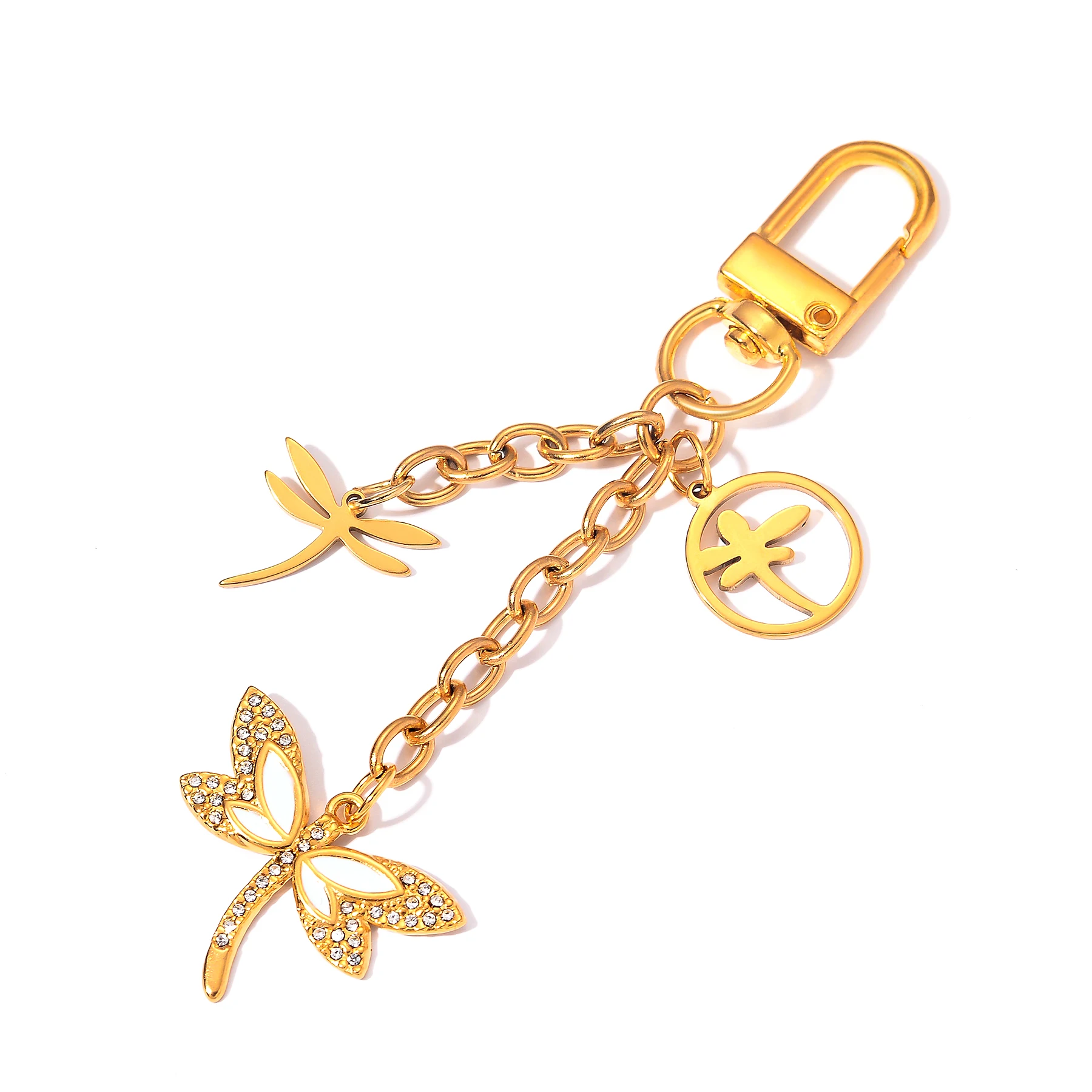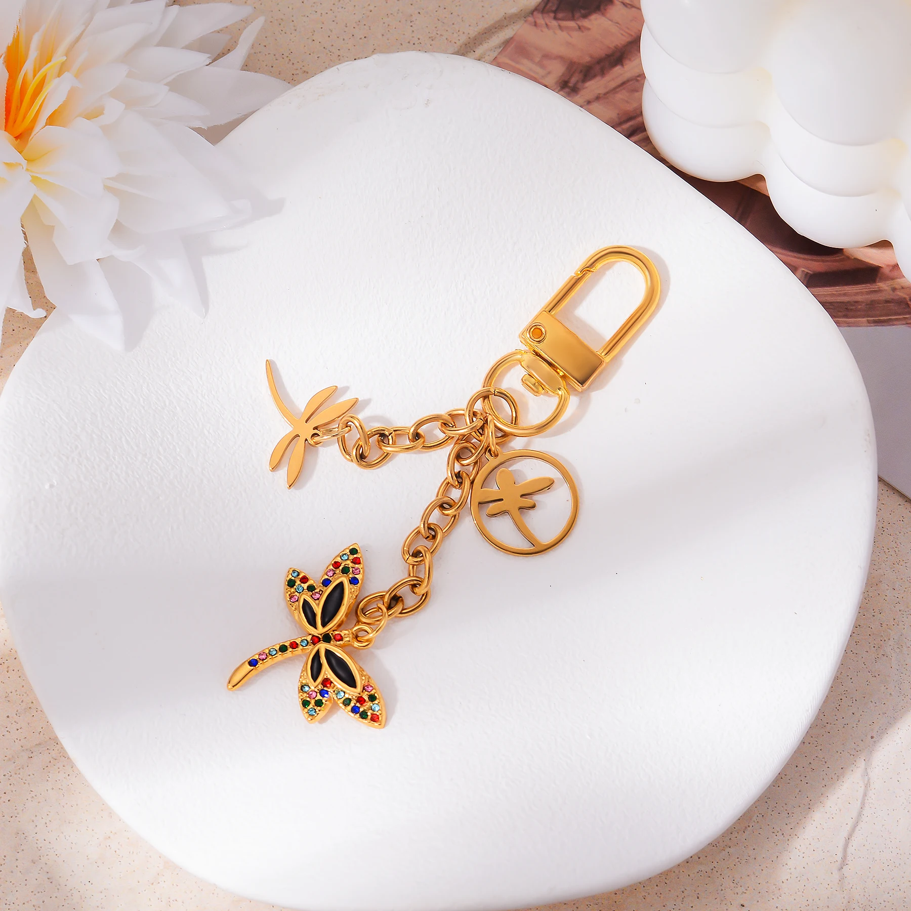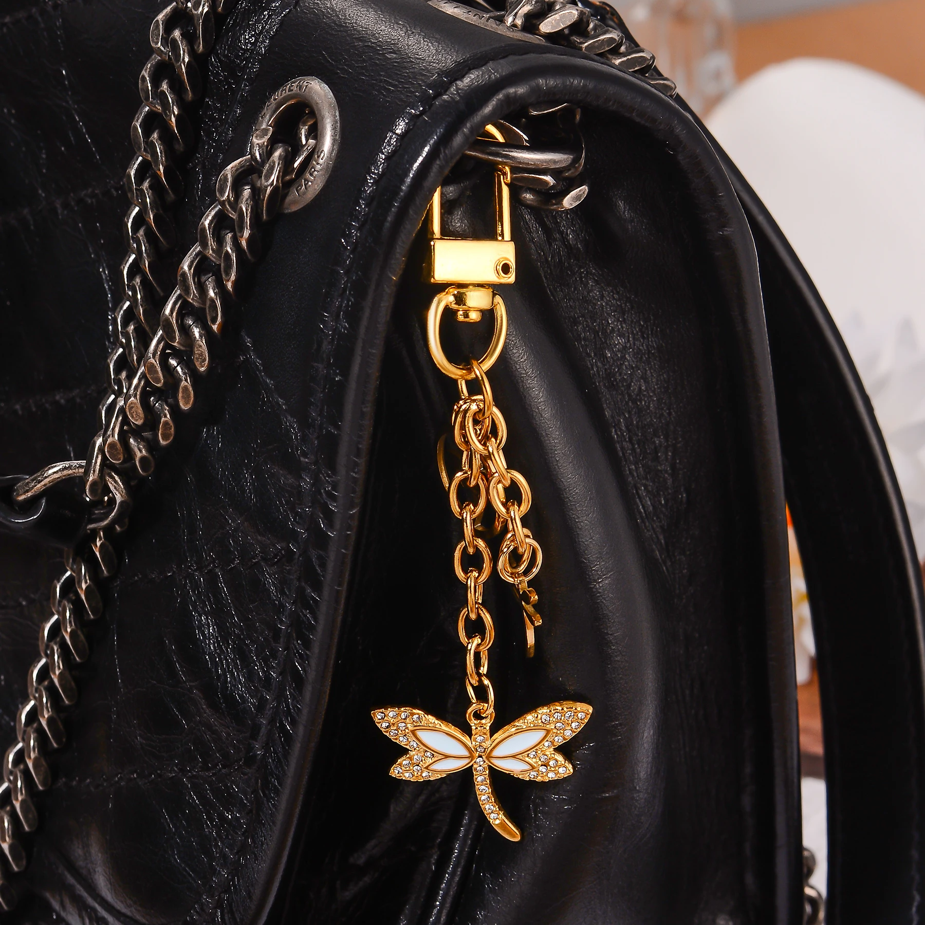 2PCS Cute Enamel Dragonfly Charm Stainless Steel Key Chain Handbag Earphone Box For Women's Exquisite Accessories Jewelry Gifts