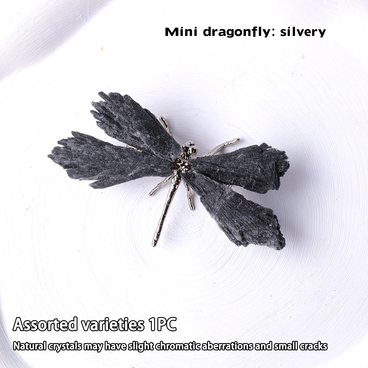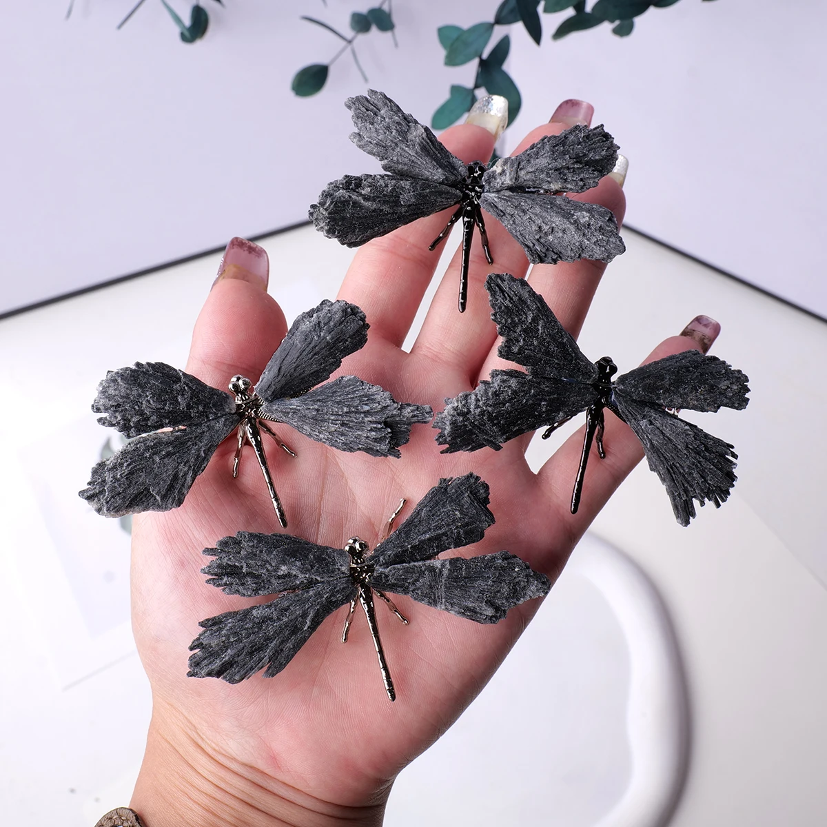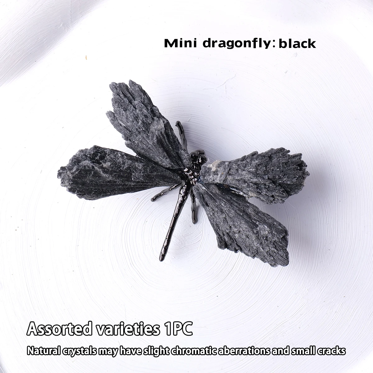 1PC Natural Crystal Mini Black Tourmaline Feathered Dragonfly Creative Handicraft Jewelry Halloween Christmas Gift