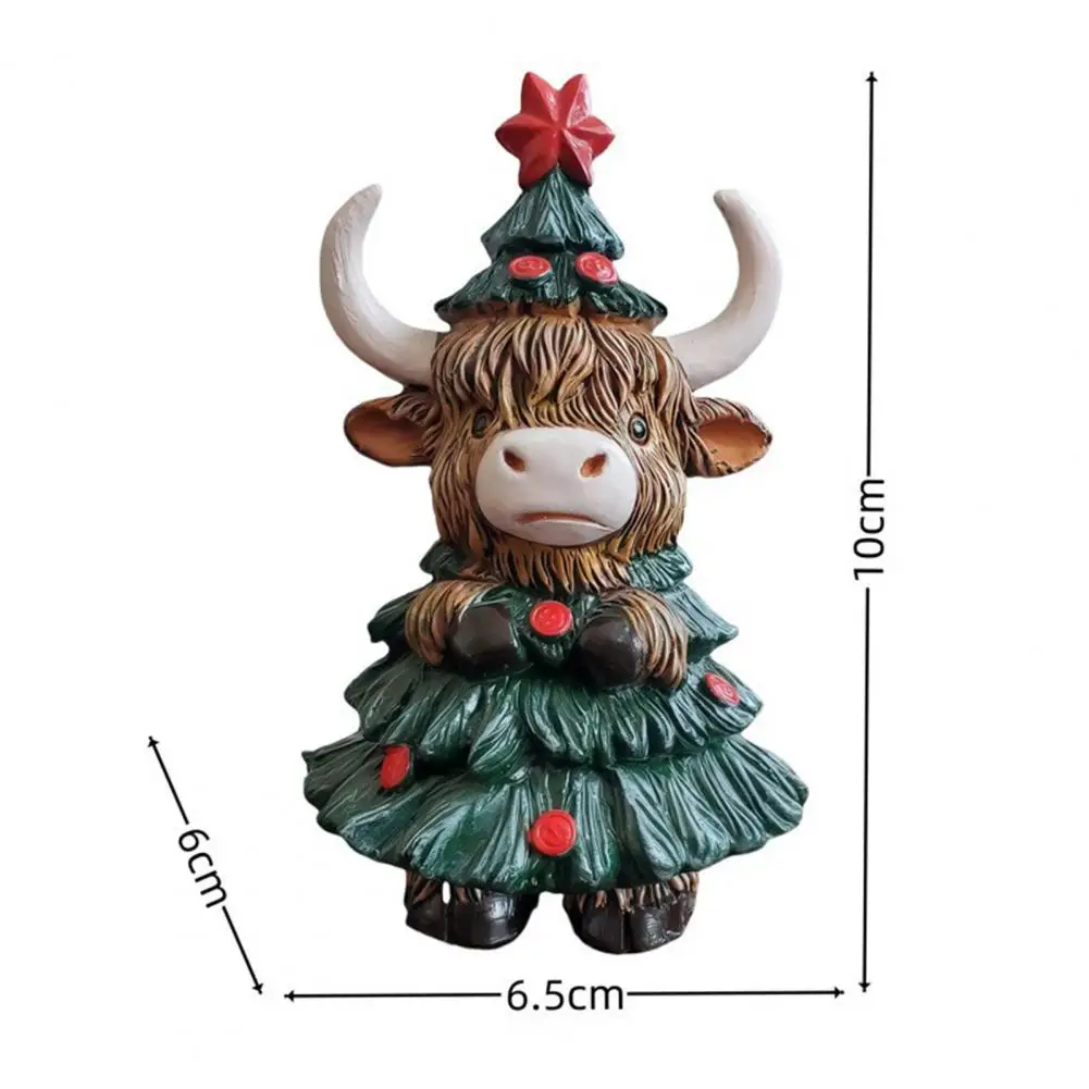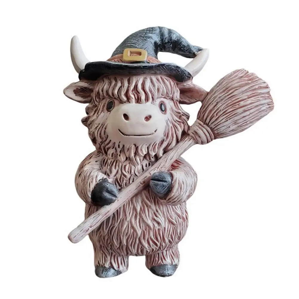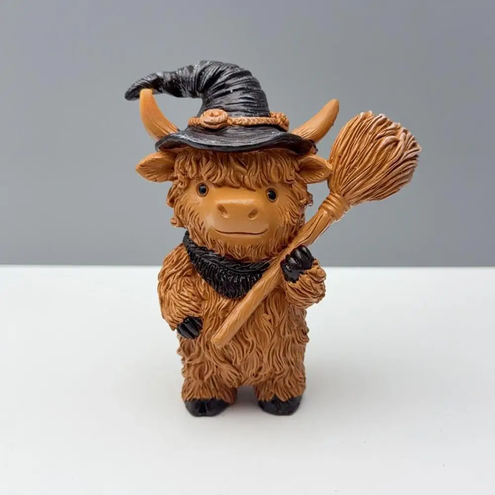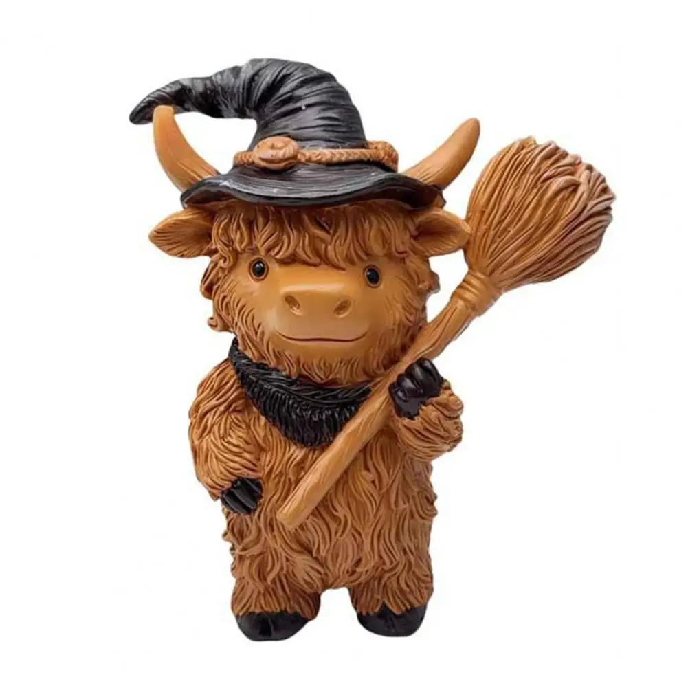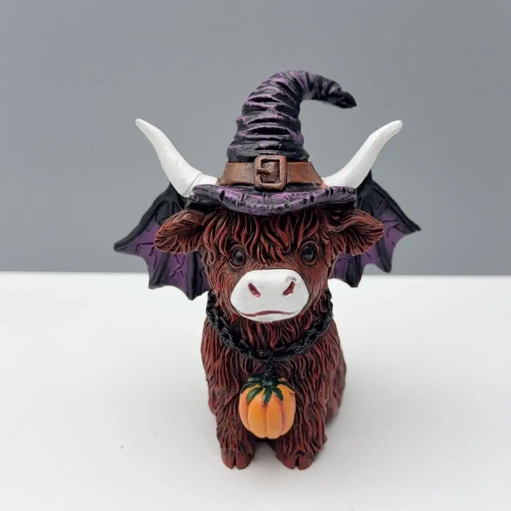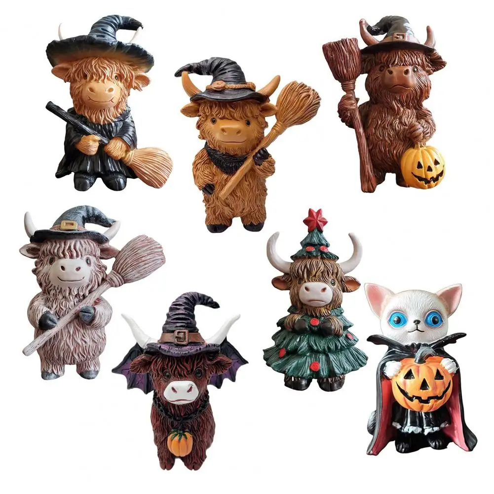 Highland Cow Resin Figurine Halloween Christmas Highland Cattle Cat Statue Animal Sculpture Holiday Party Decoration Ornament