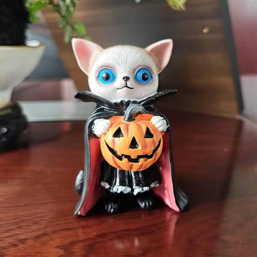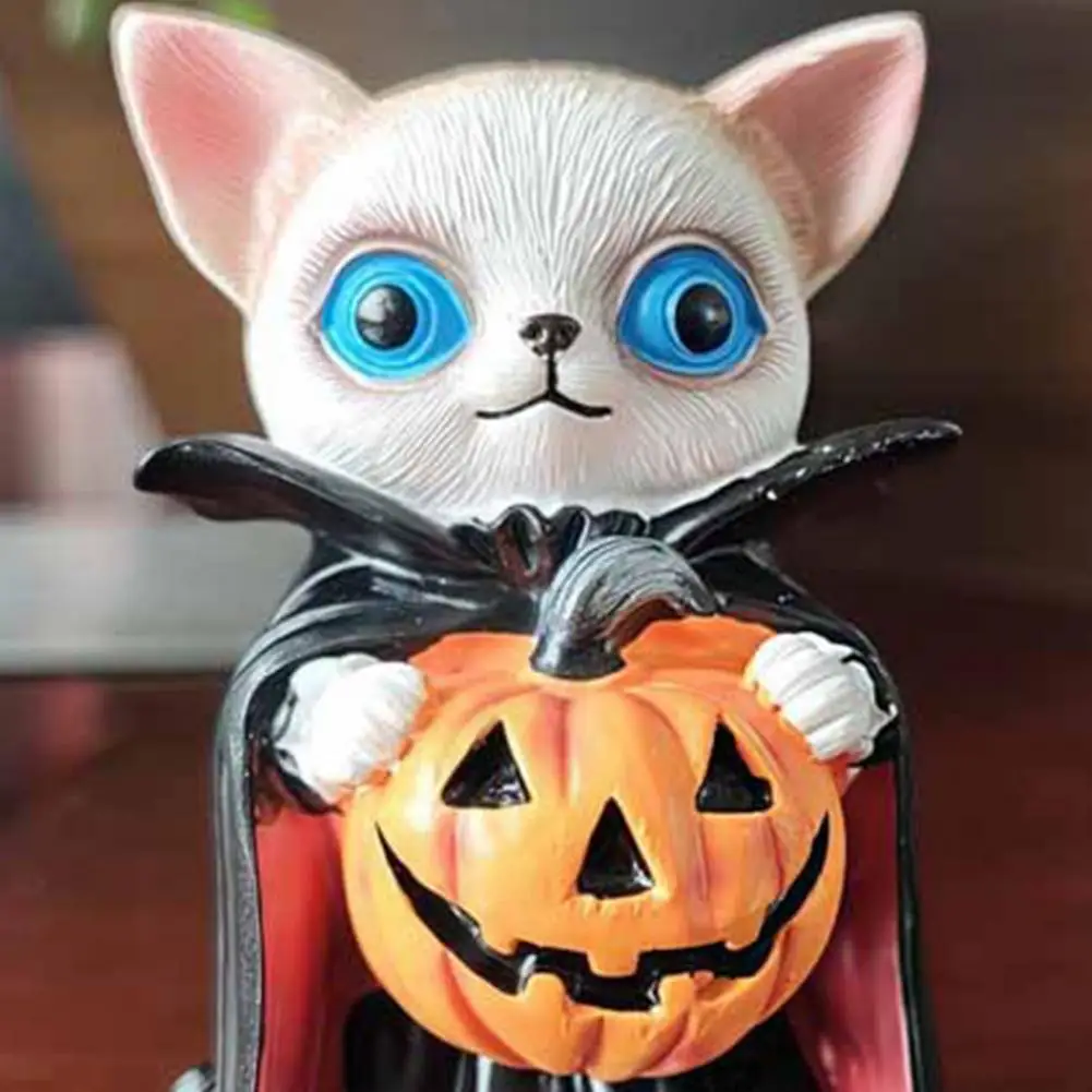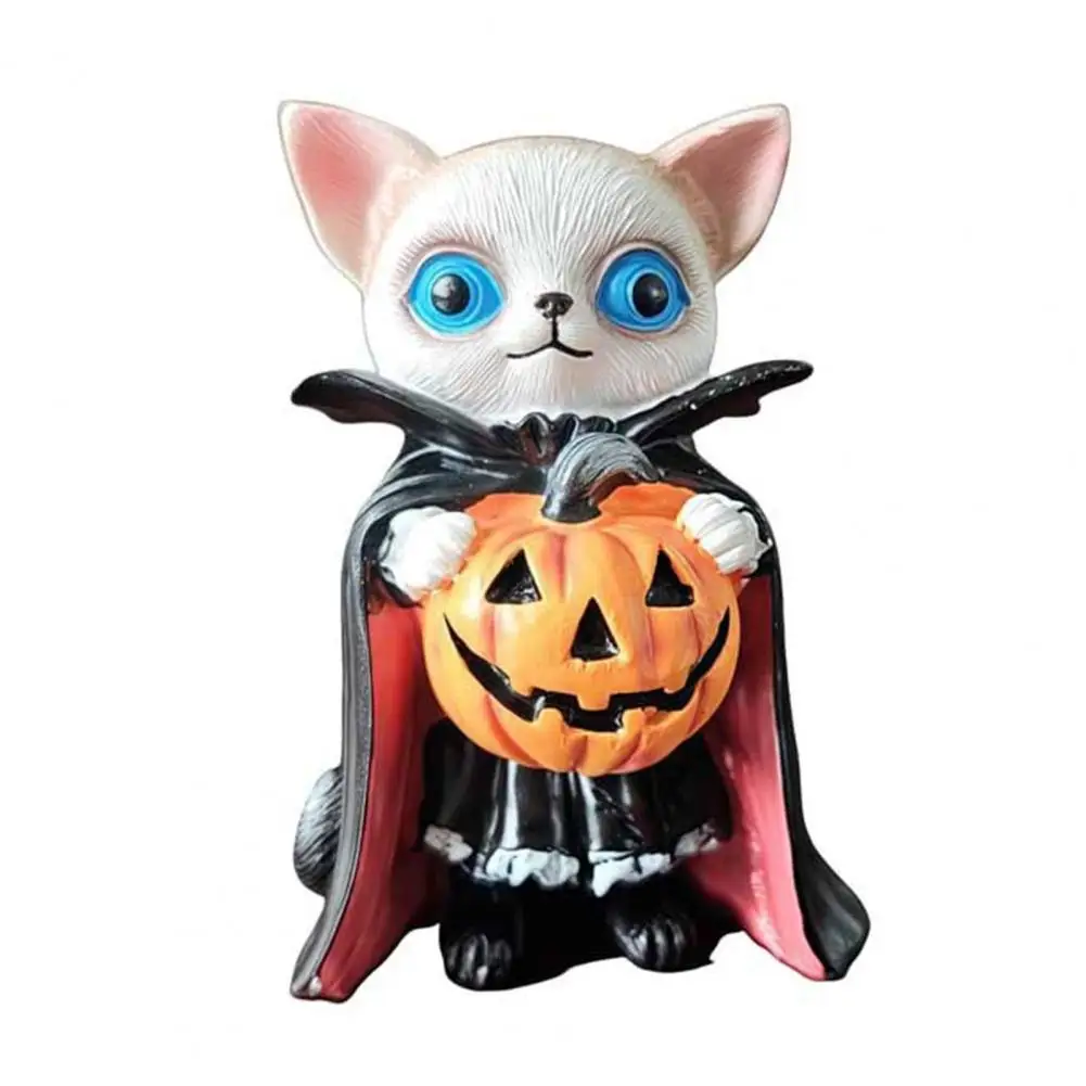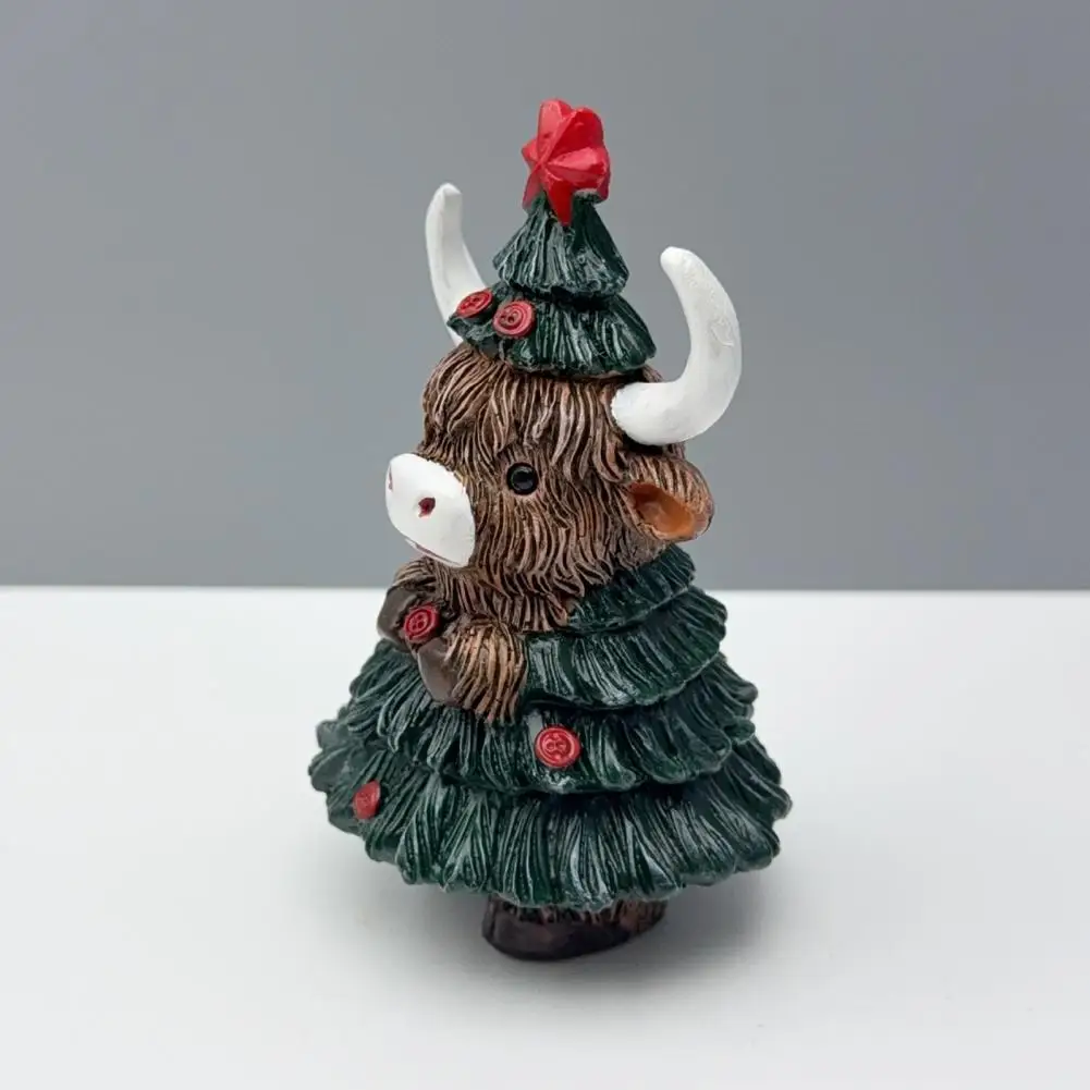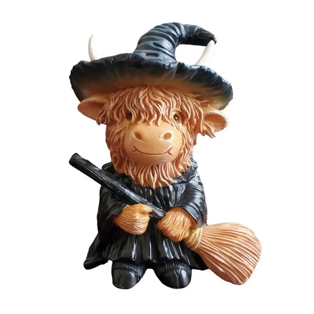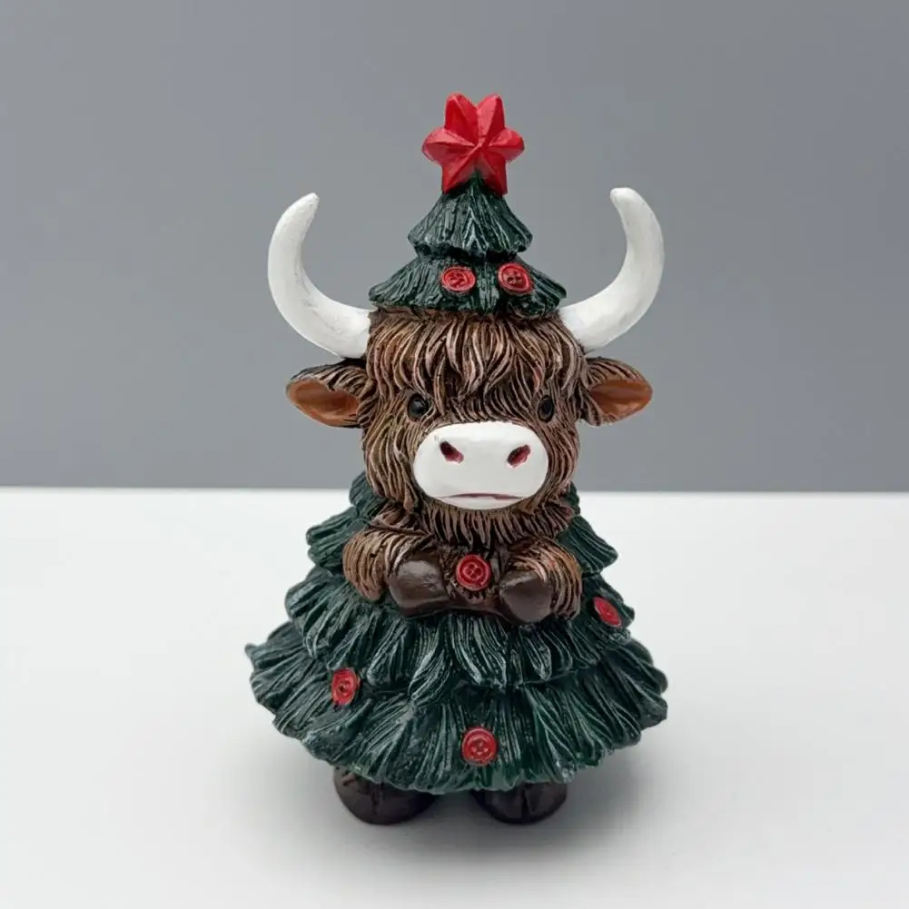 Highland Cow Resin Figurine Halloween Christmas Highland Cattle Cat Statue Animal Sculpture Holiday Party Decoration Ornament
