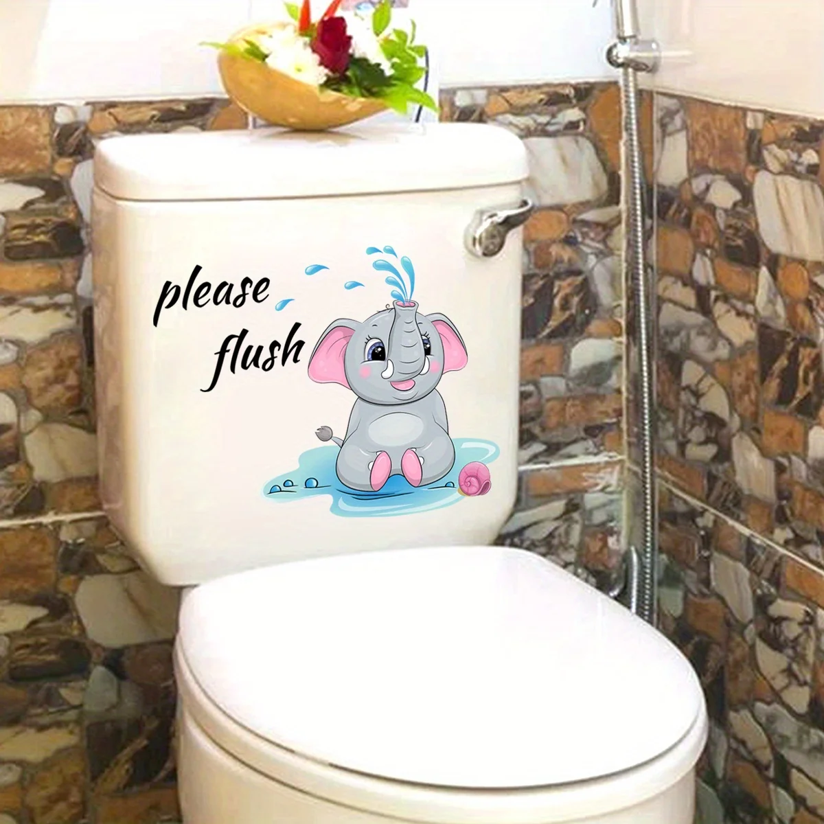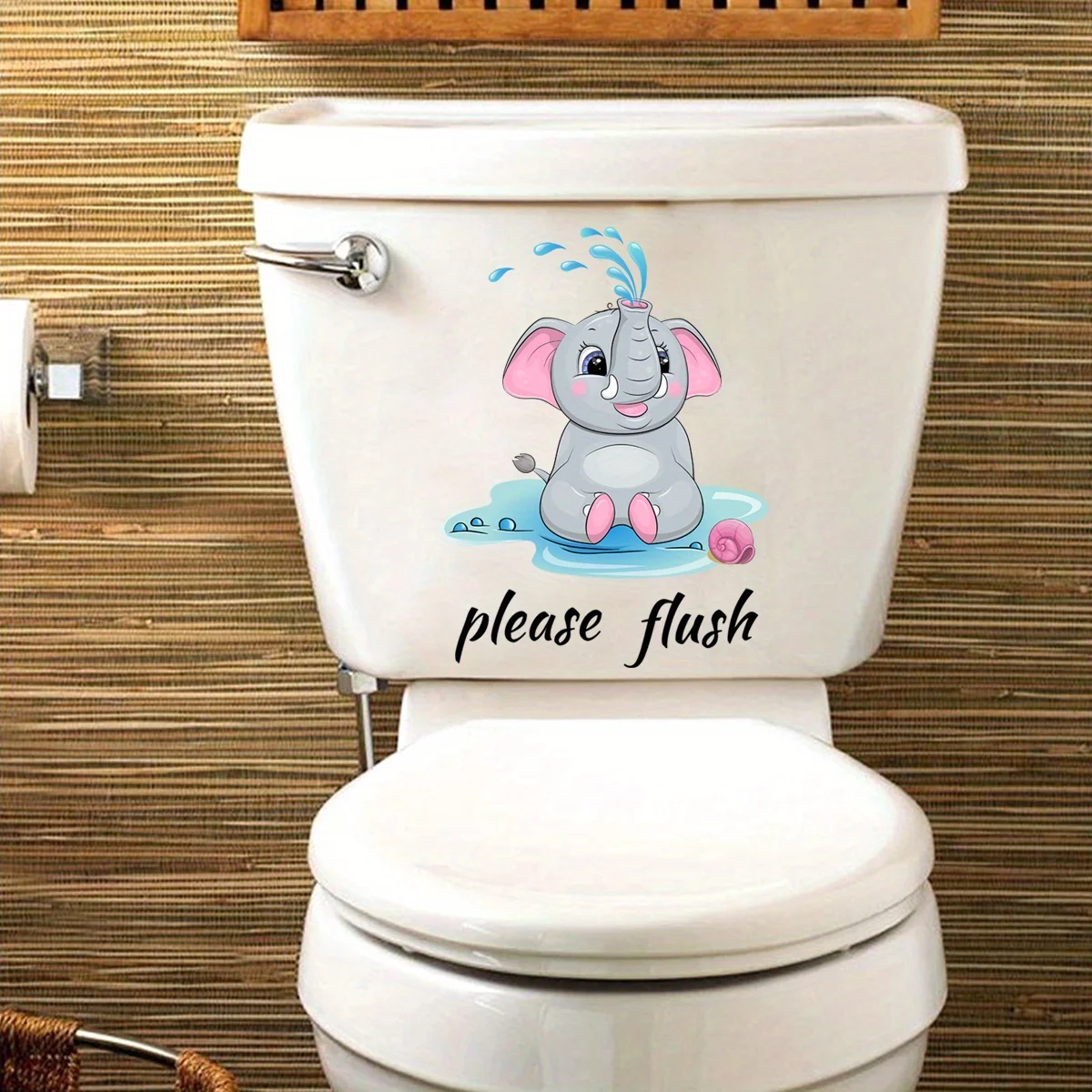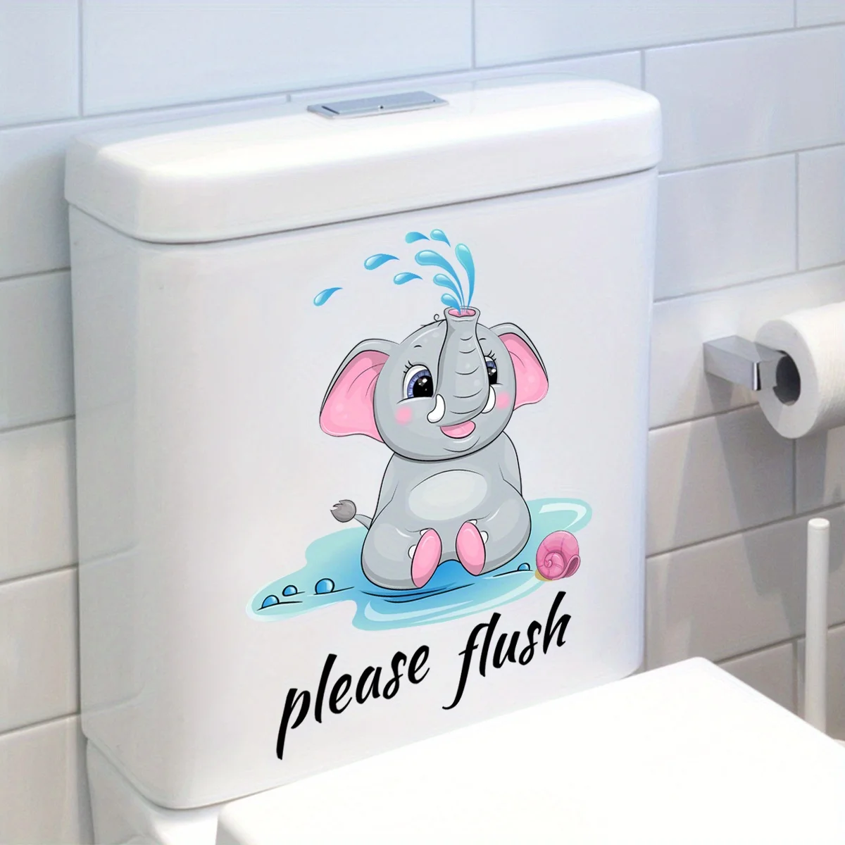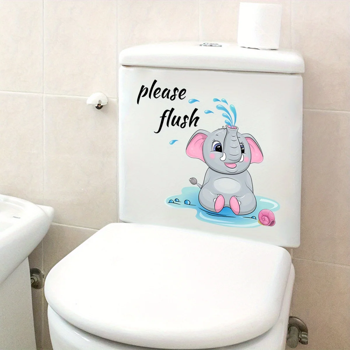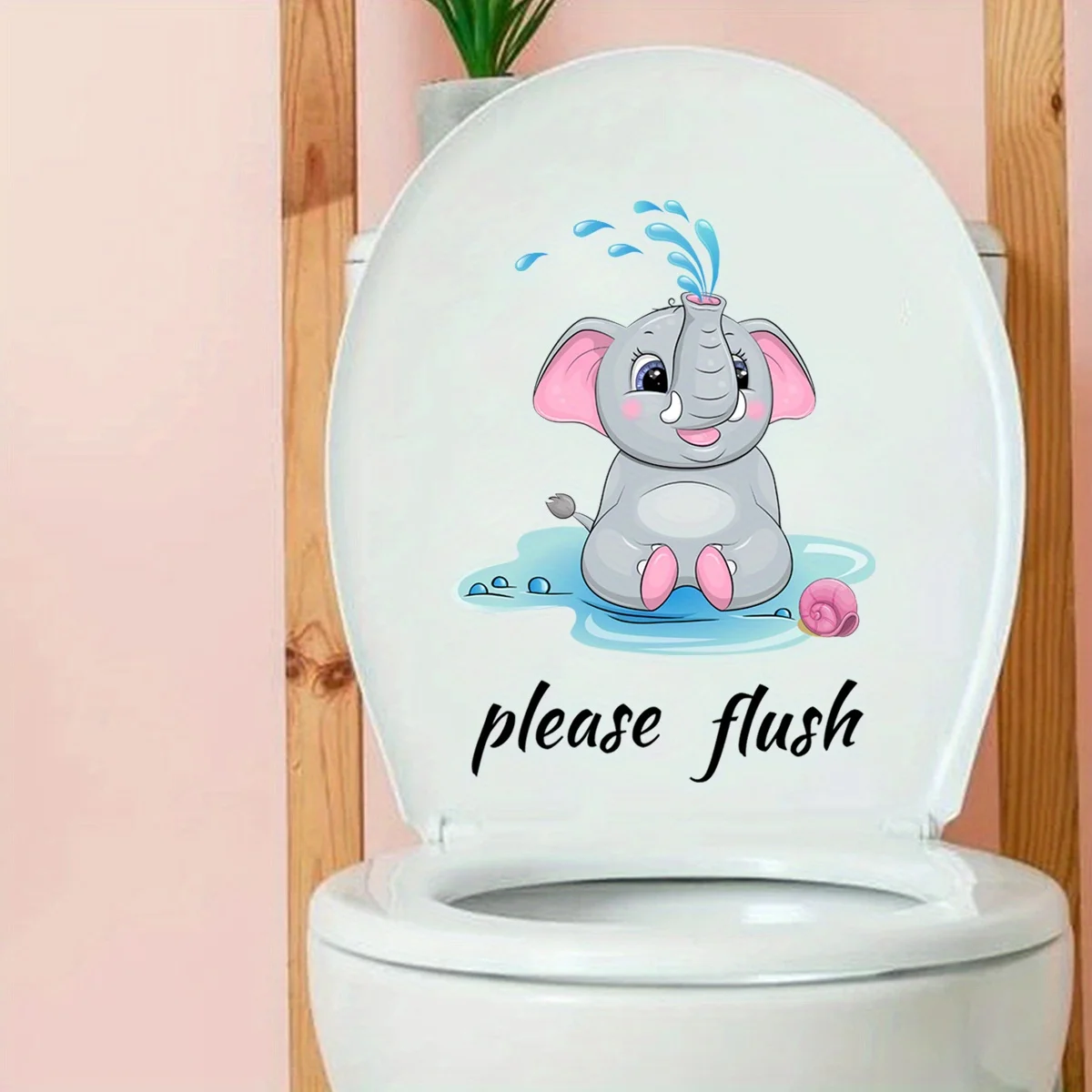 1pc Cartoon Elephant Pattern Toilet Lid Decal Funny Self Adhesive Toilet Sticker Creative Removable Toilet Cover Sticker