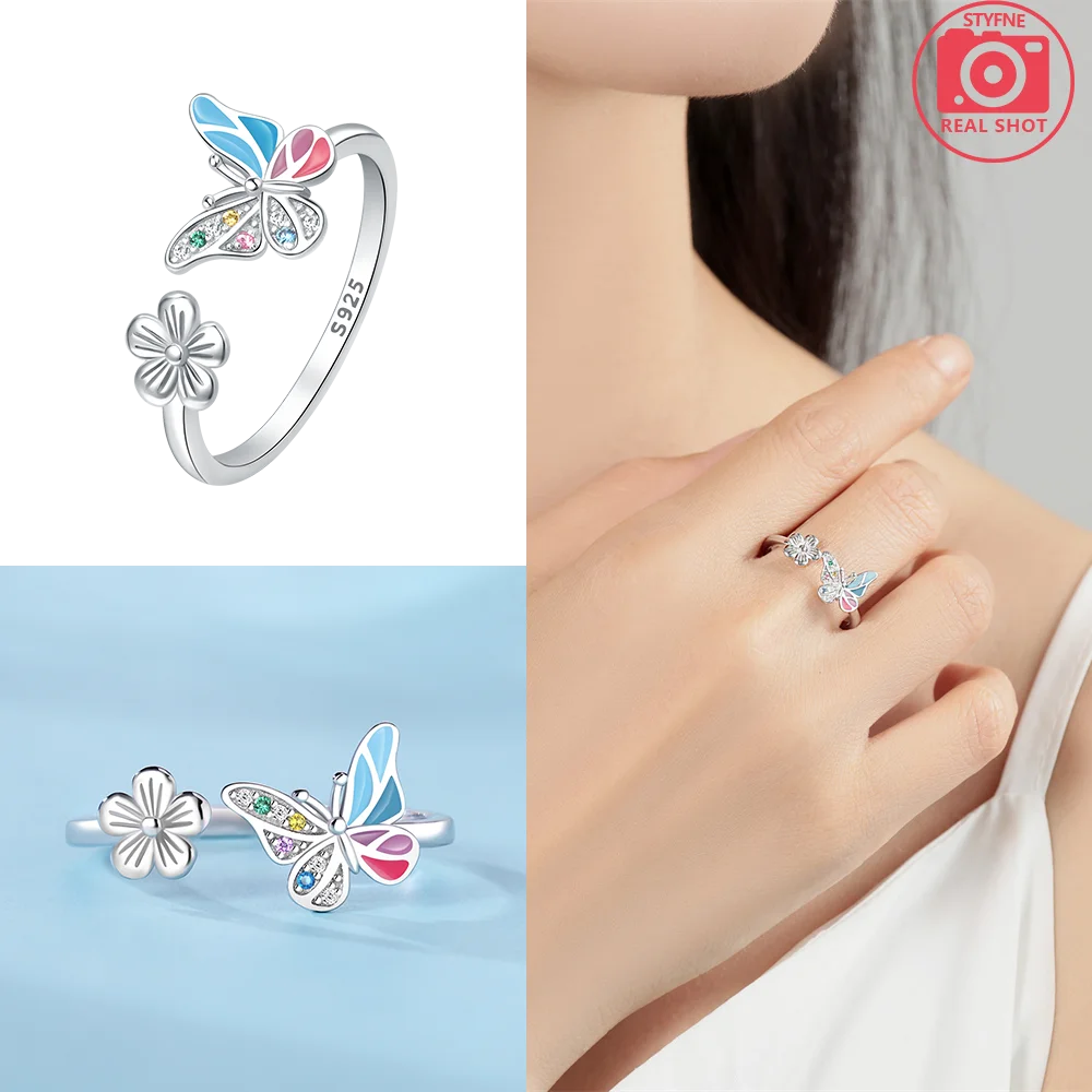925 Sterling Silver Ring for Women Butterfly flower ring Zircon Fine Fashion Silver Jewelry Anniversary Gift Bridal Ring