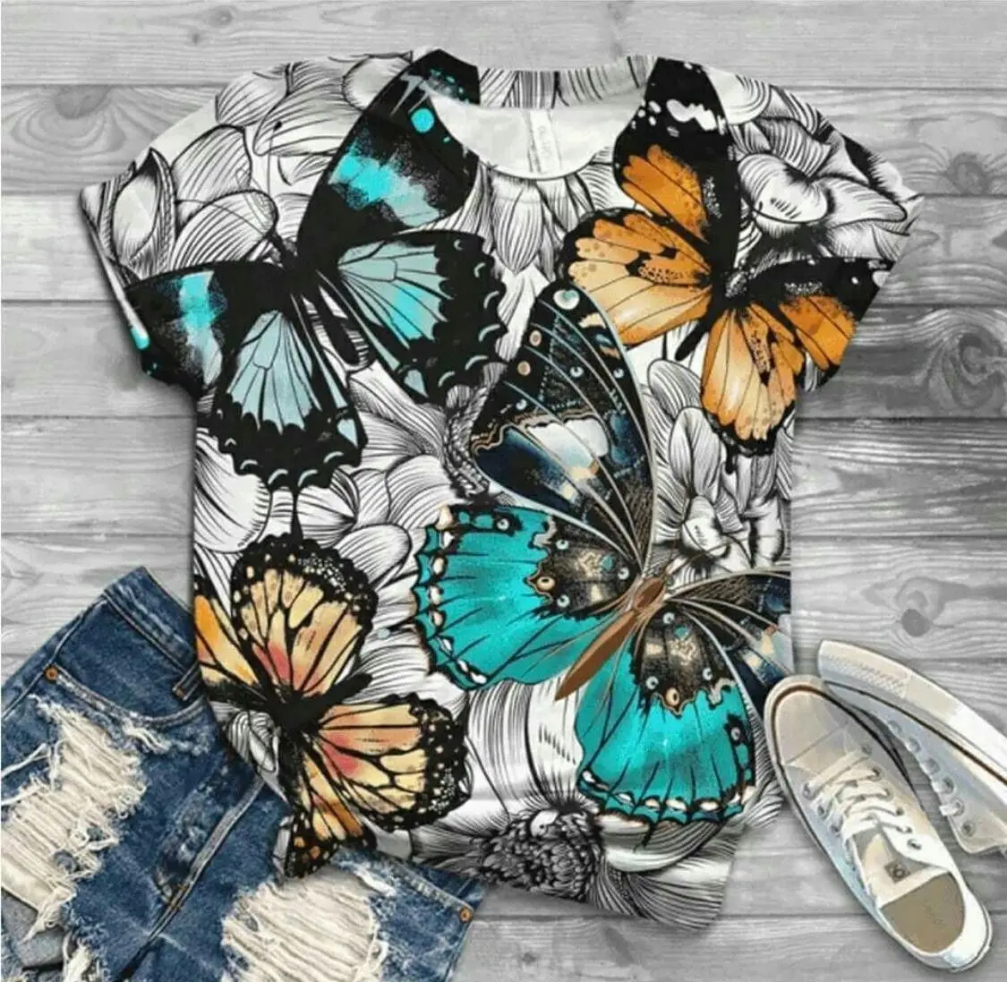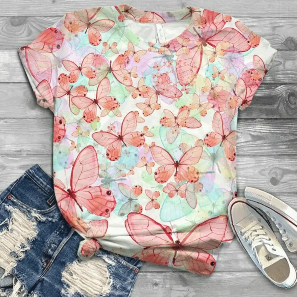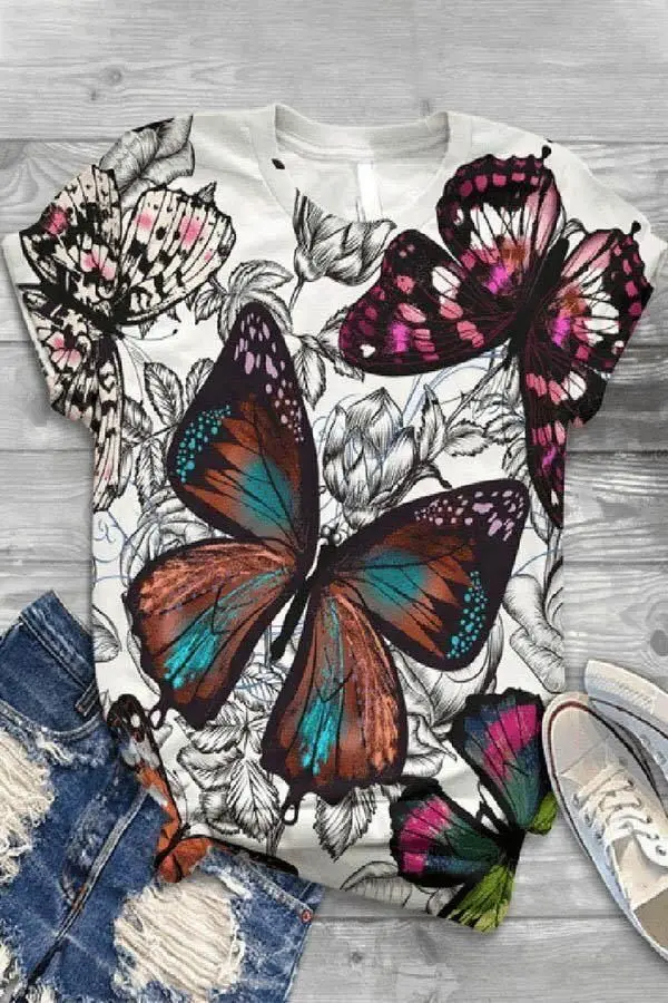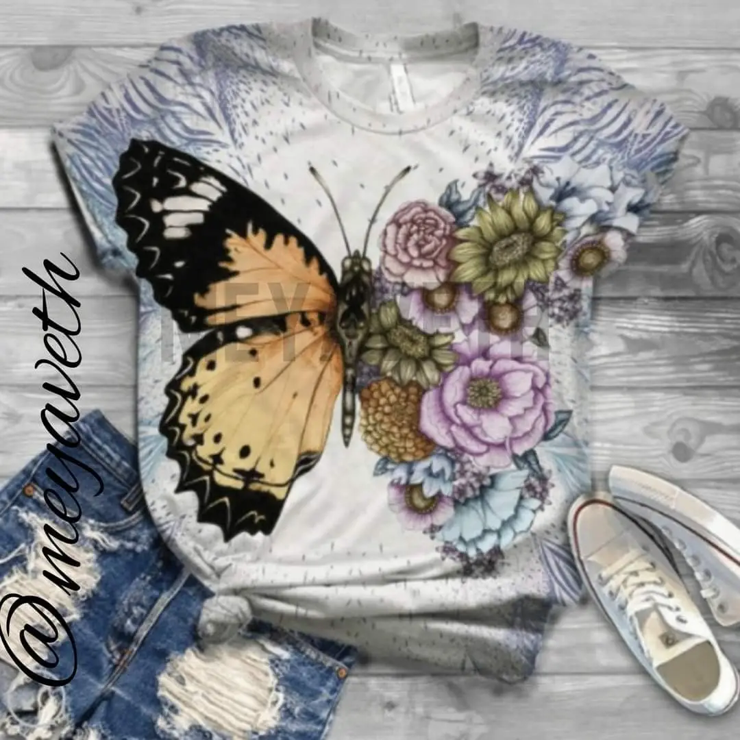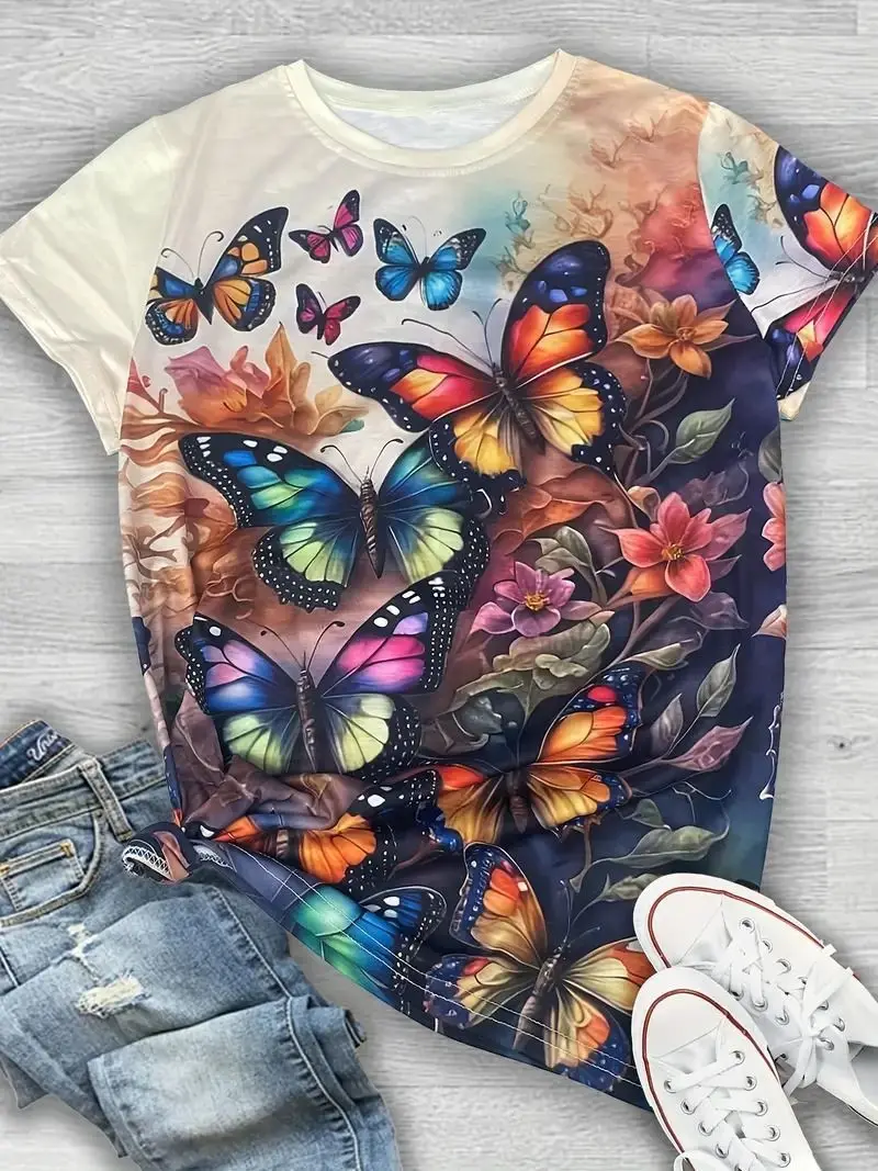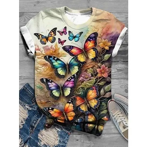 Butterfly Dragonfly Pattern 3D Print T-Shirts Women's Short Sleeves T Shirt Streetwear Y2k Harajuku Tees Tops Female Clothing