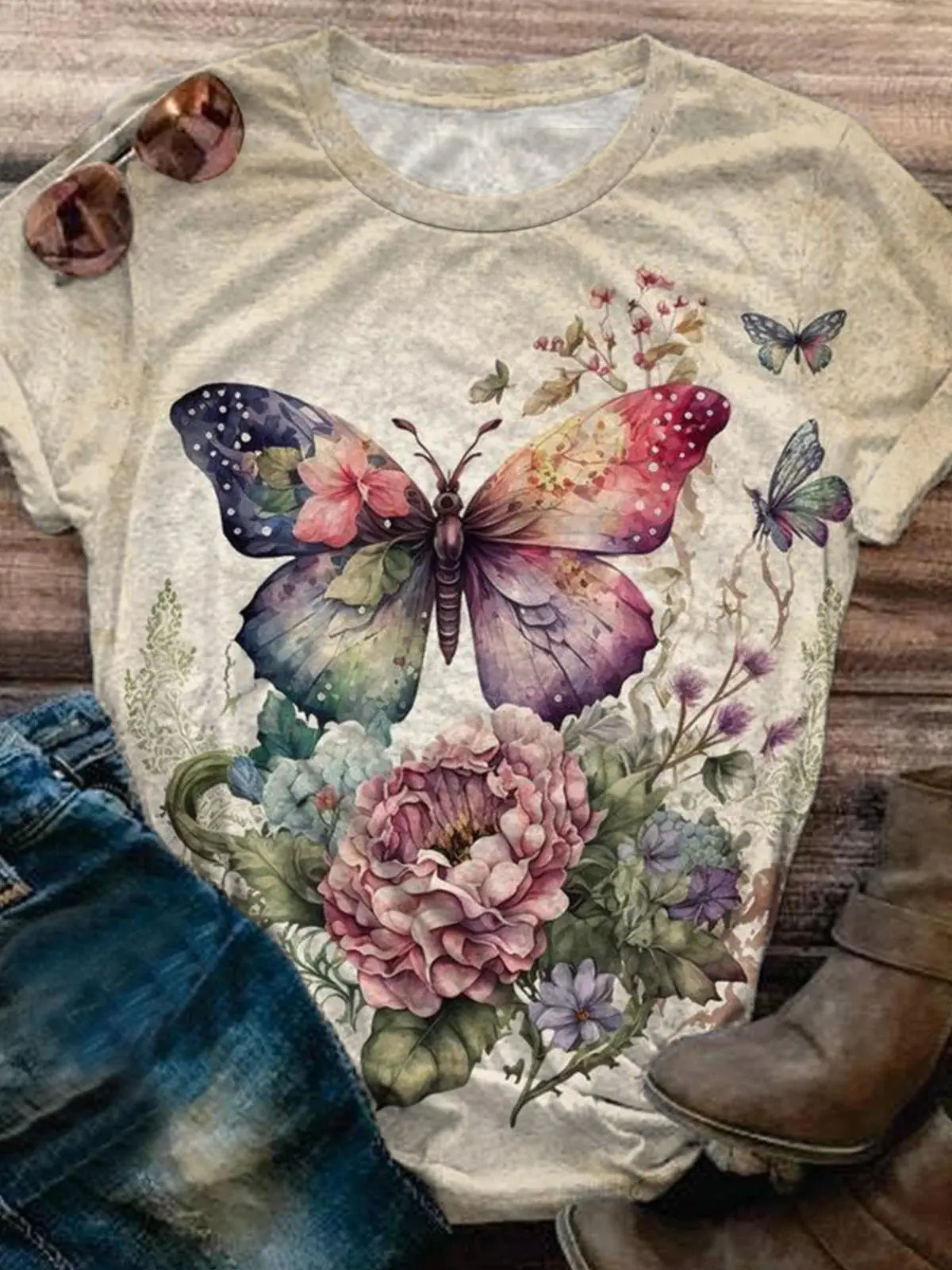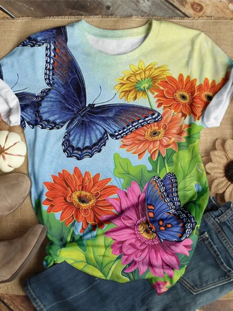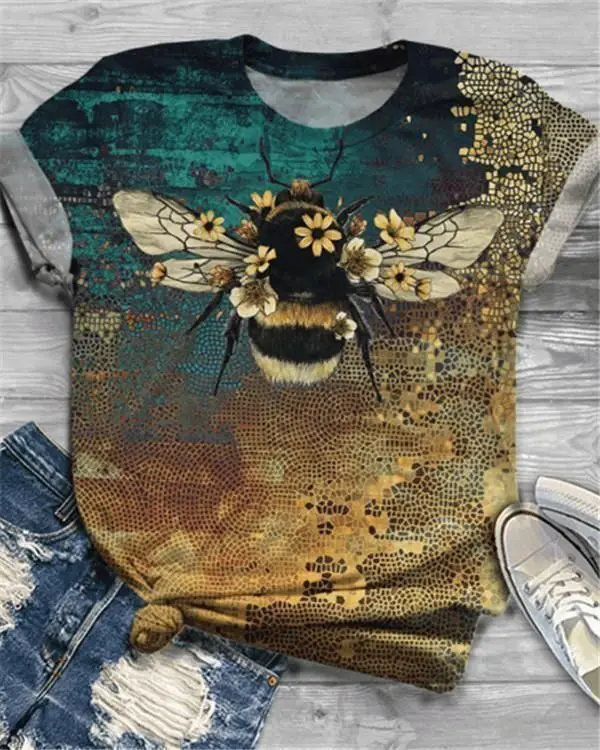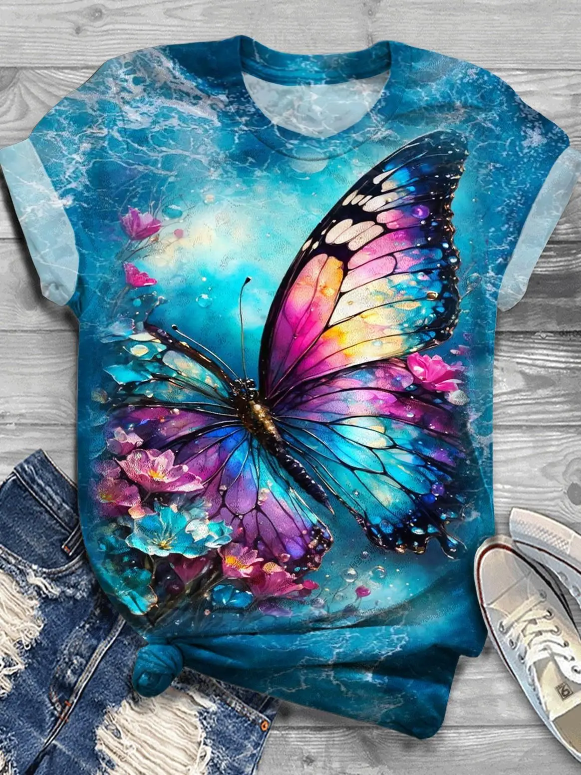Butterfly Dragonfly Pattern 3D Print T-Shirts Women's Short Sleeves T Shirt Streetwear Y2k Harajuku Tees Tops Female Clothing