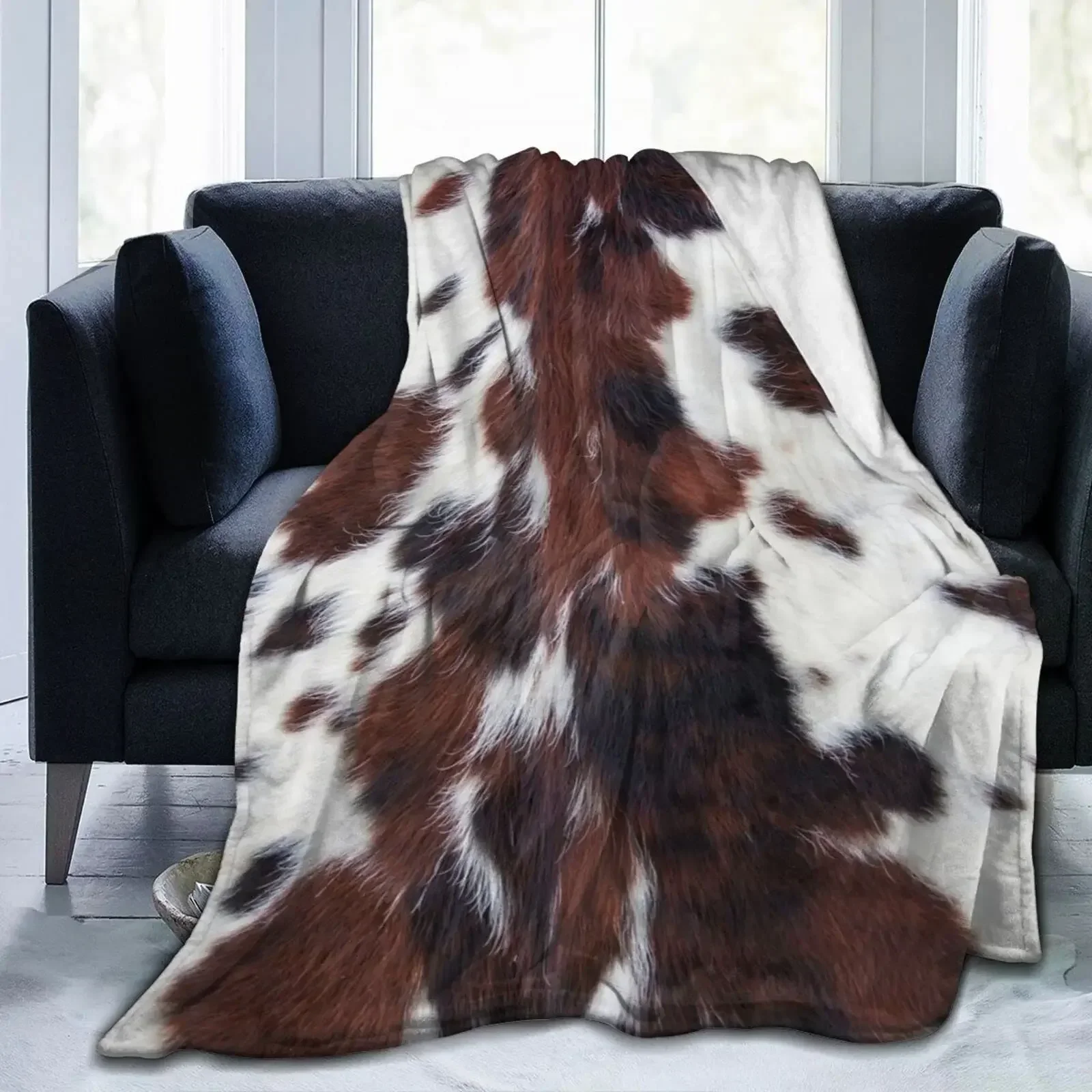 Cow Print Cowhide Throw Blanket All Season Brown Warm Lightweight Soft Fuzzy Flannel Blanket for Bed Sofa Couch,gifts for Friend