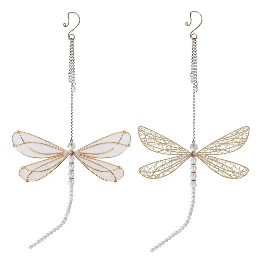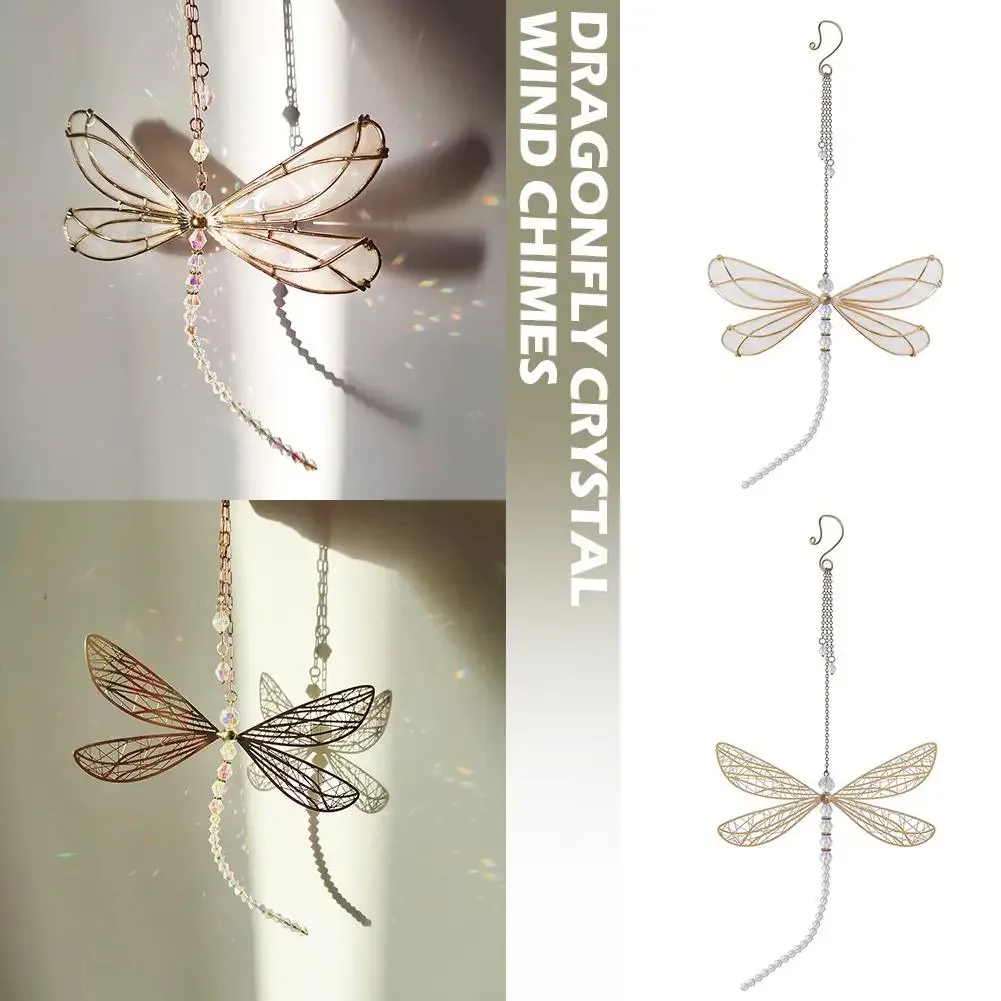 Creative Metal Wing Dragonfly Crystal Suncatcher Garden Wind Chimes Butterfly Home Decor Window Car Ornaments
