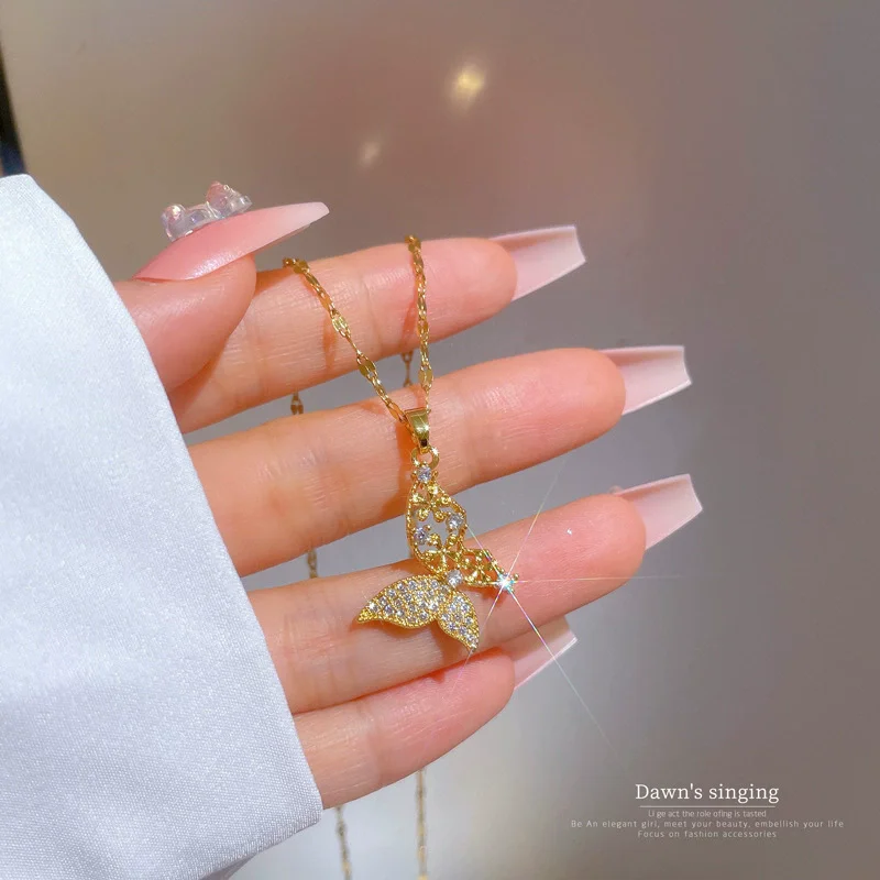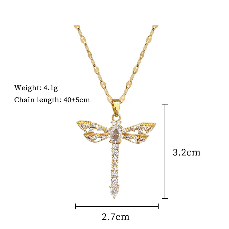 Dragonfly Butterfly Shiny Cubic Zircon Pendant Necklace f