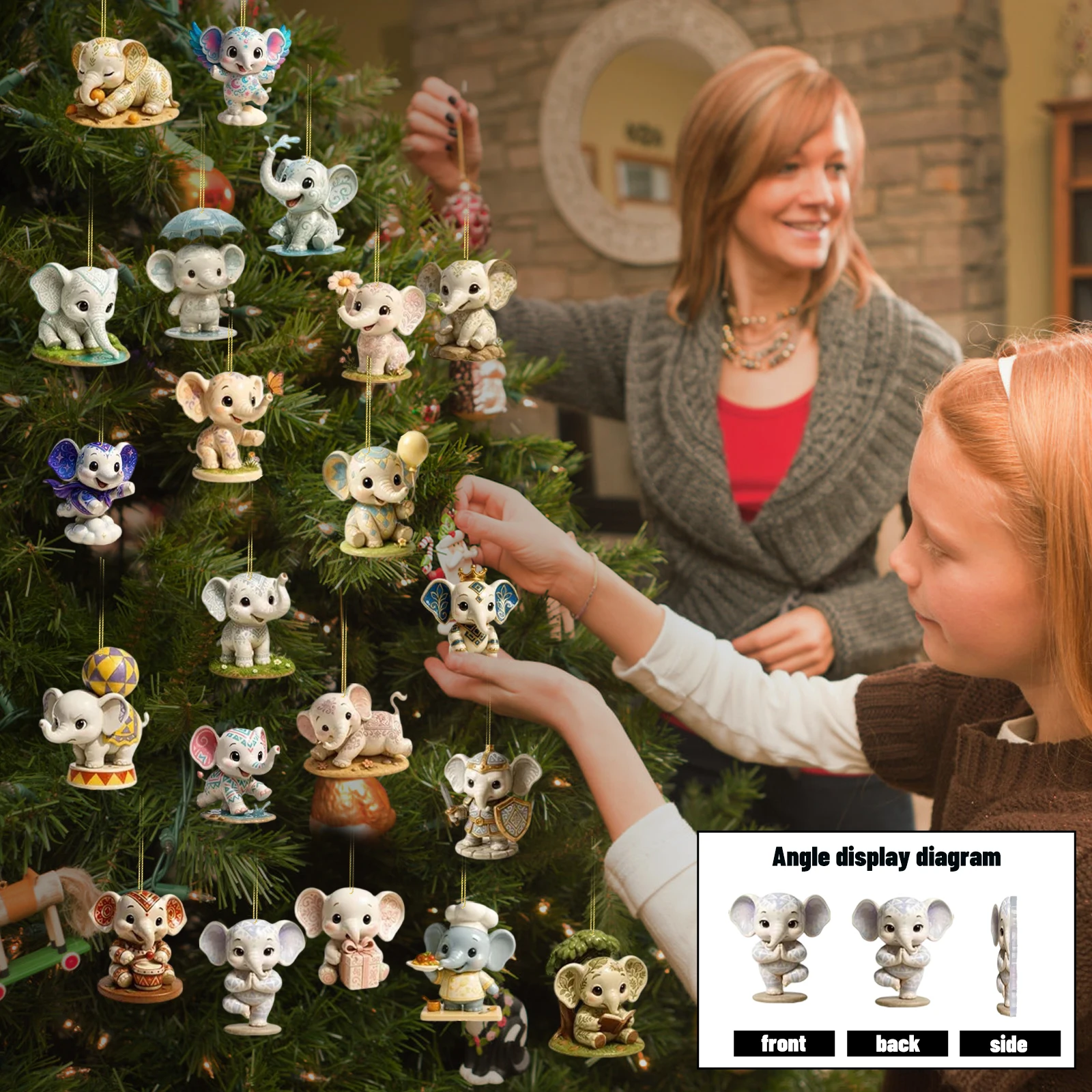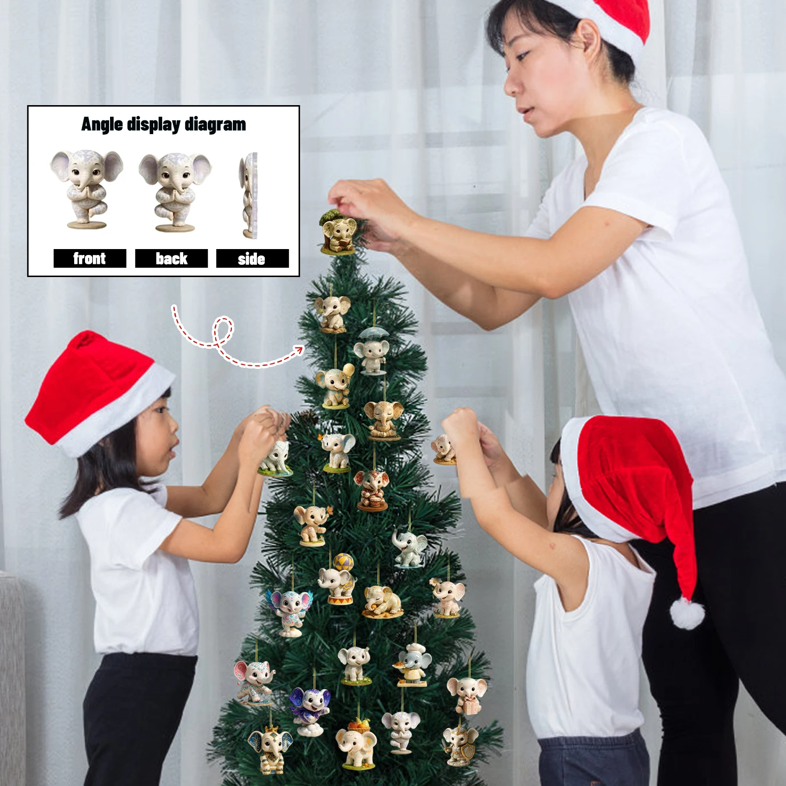 Elephant Christmas Countdown, 2D Flat Acrylic Ornaments, Christmas Tree Pendants, Suitable For Christmas Decoration