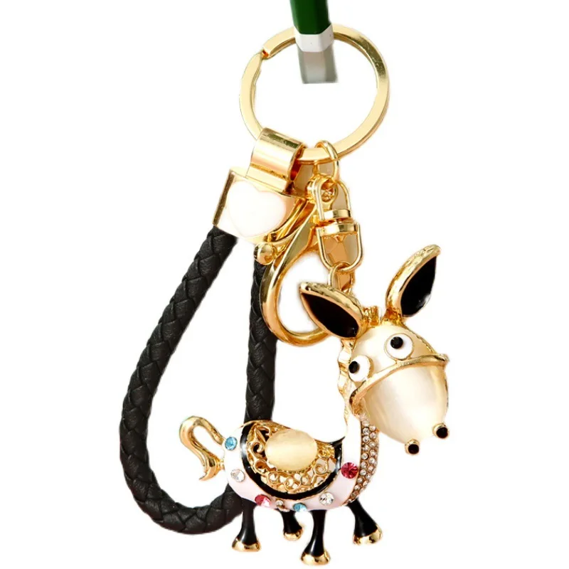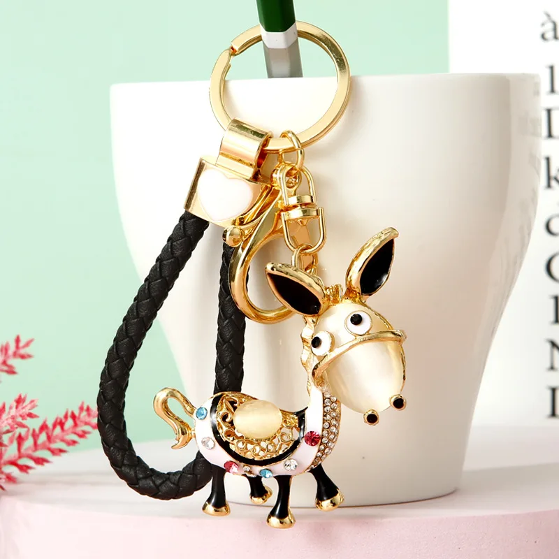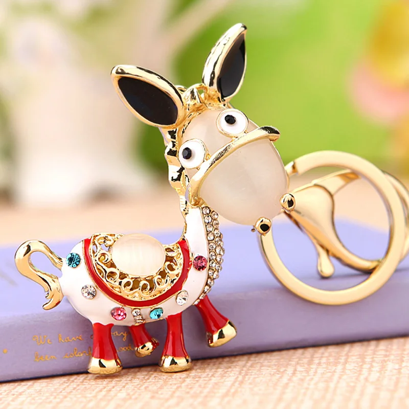 Enamel Donkey HandBag Pendant Crystal Keyrings Keychains For Car Purse Bag Buckle Party Gift Key chains Holder
