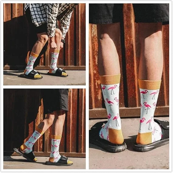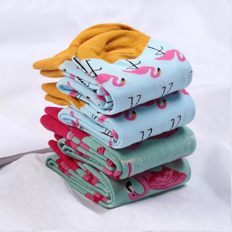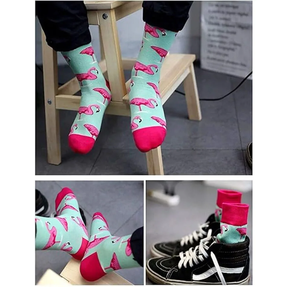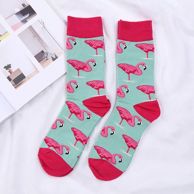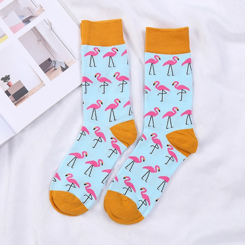 Fashion Cotton Crew Women Men Socks Hip Hop Harajuku Fixed Gear Street Tide Novelty British Style Happy Funny Flamingo Sock