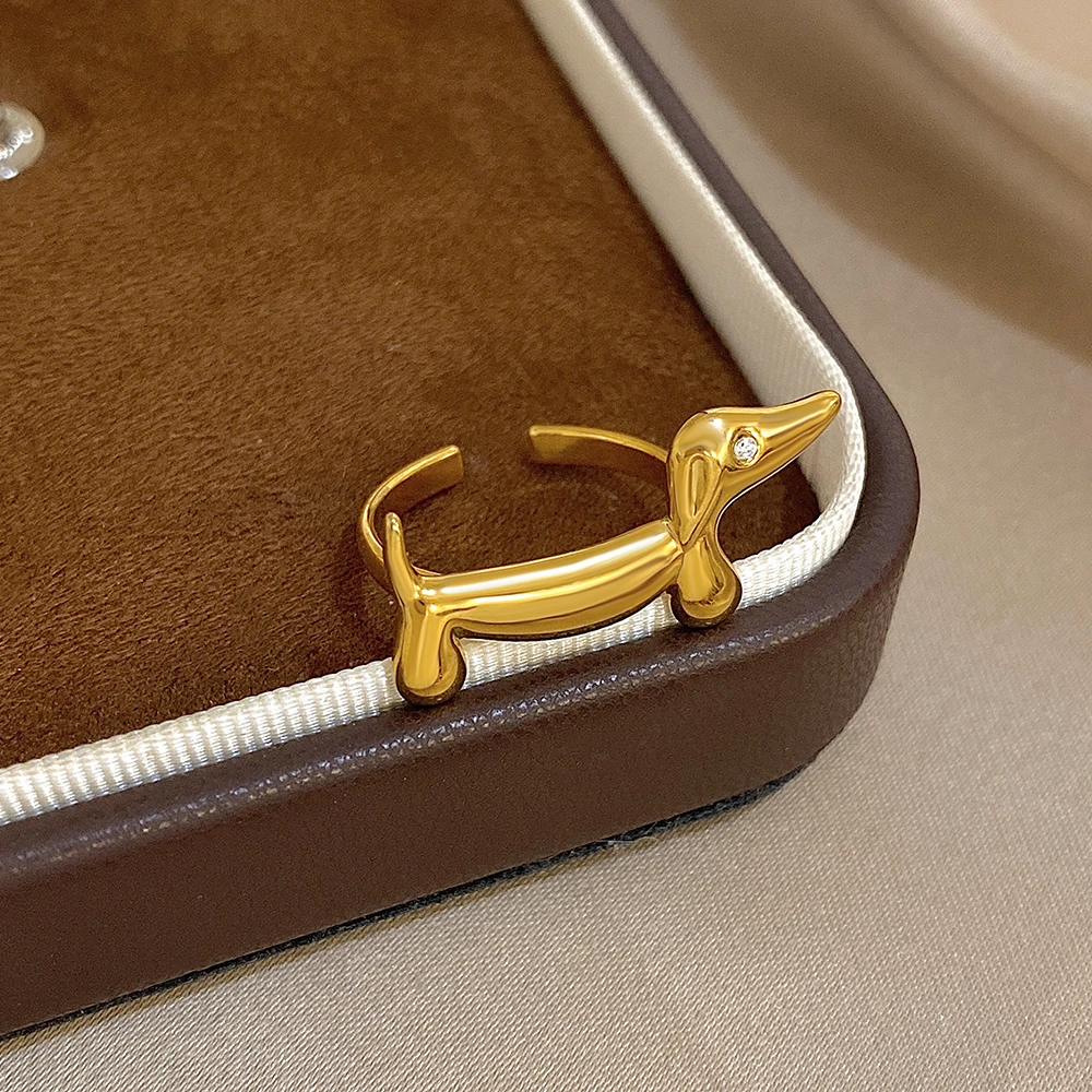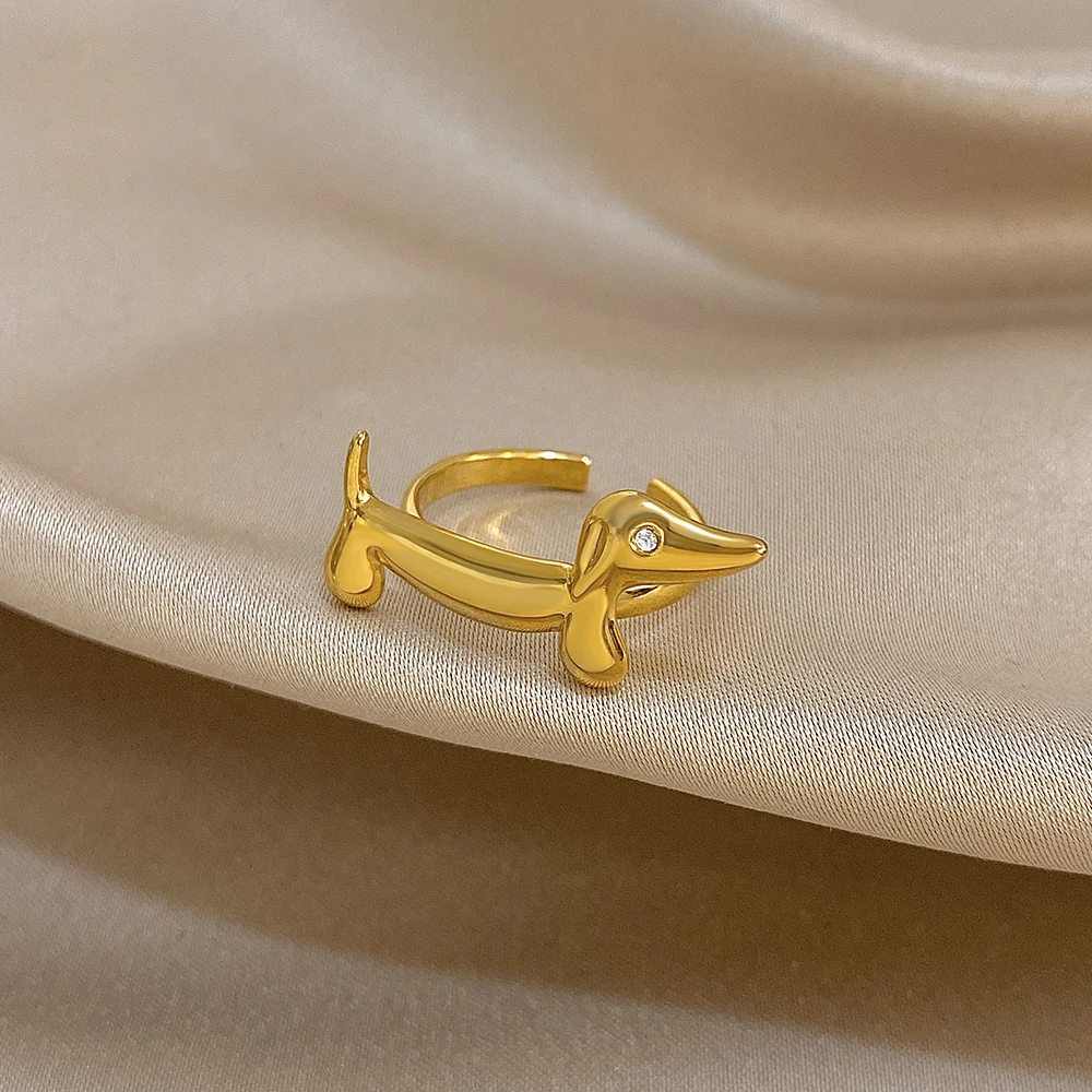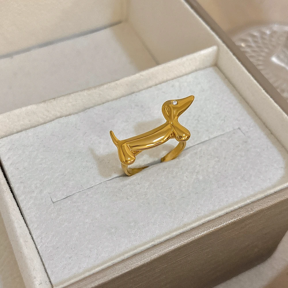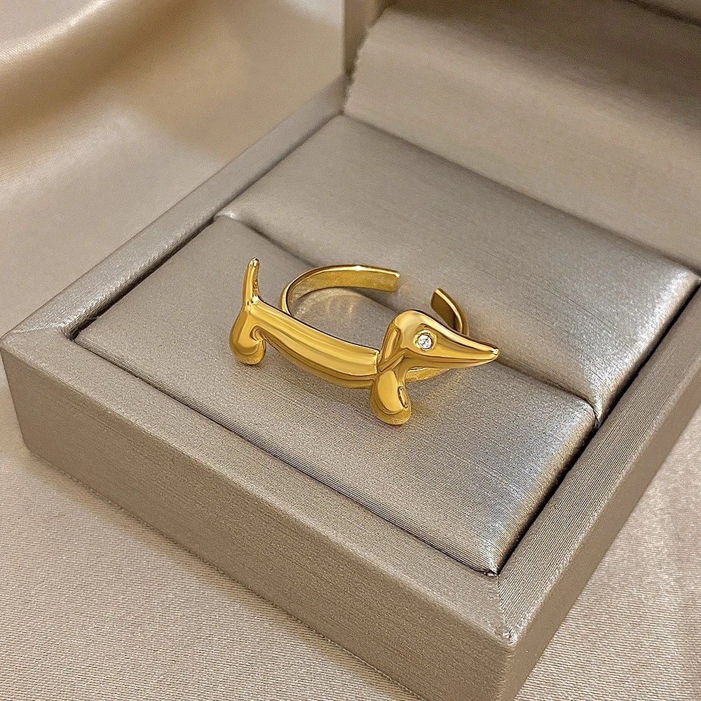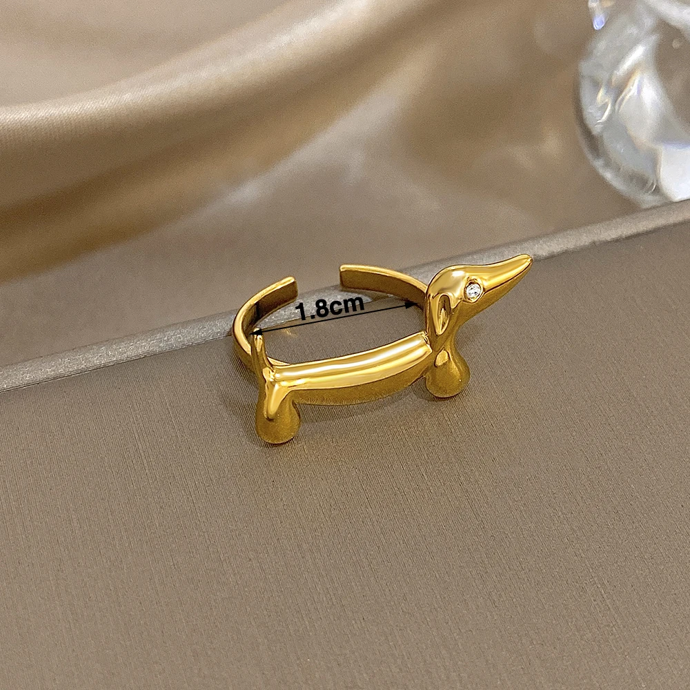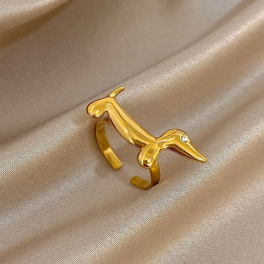 FLASHBUY New Fashion Cute Dachshund Stainless Steel Ring for Women Girl Statement Gold Color Chic Party Daily Jewelry