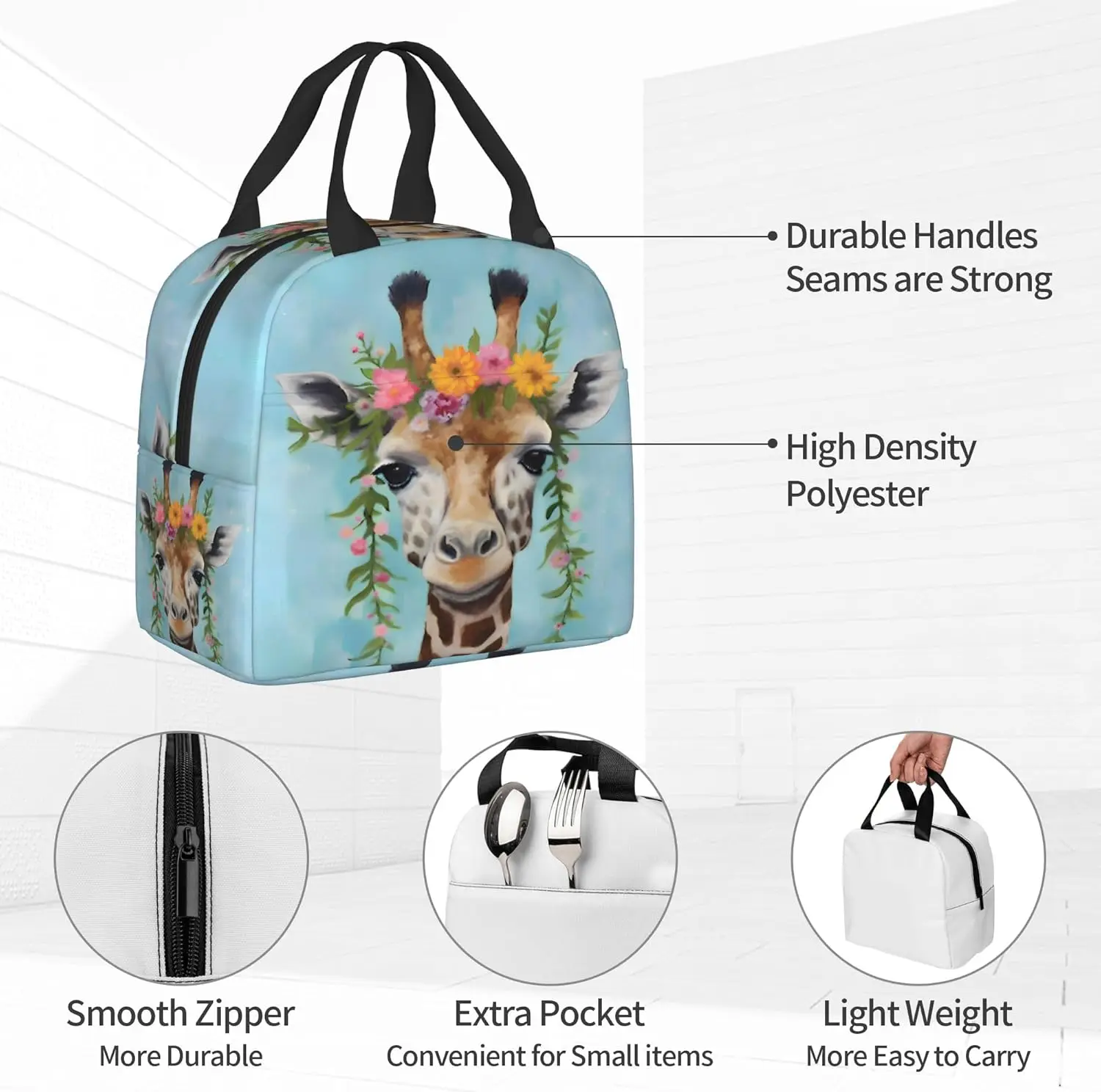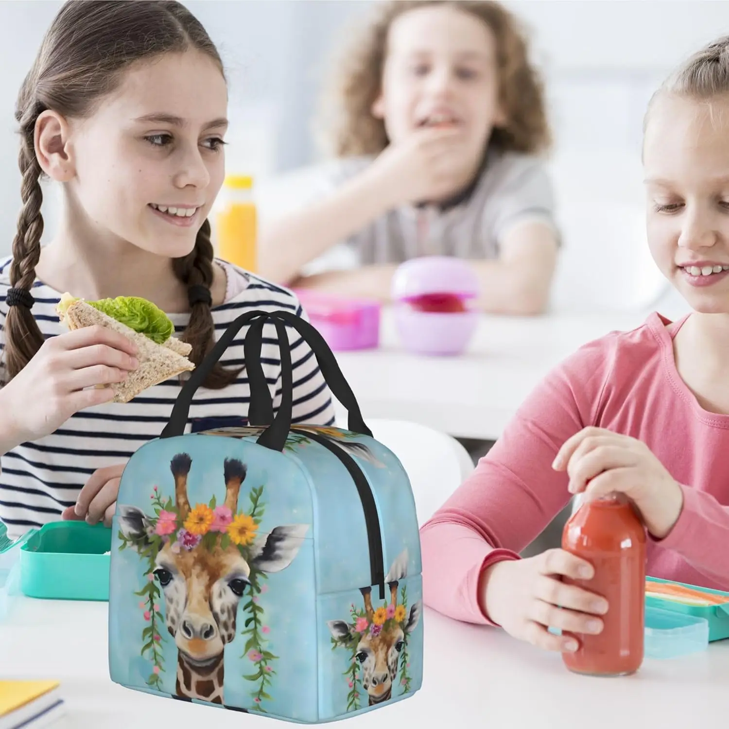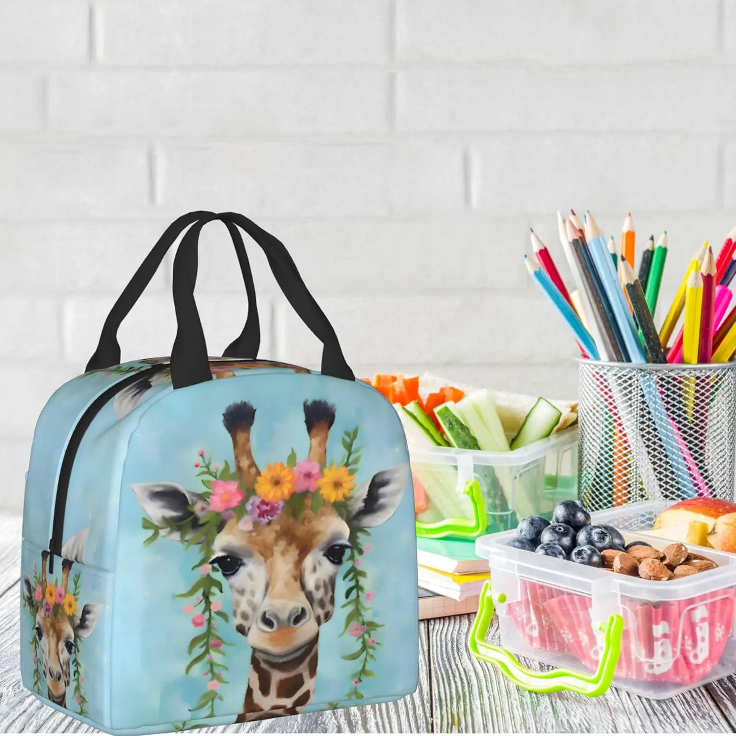 Giraffe Wreath Lunch Box - Insulated Lunch Bags
