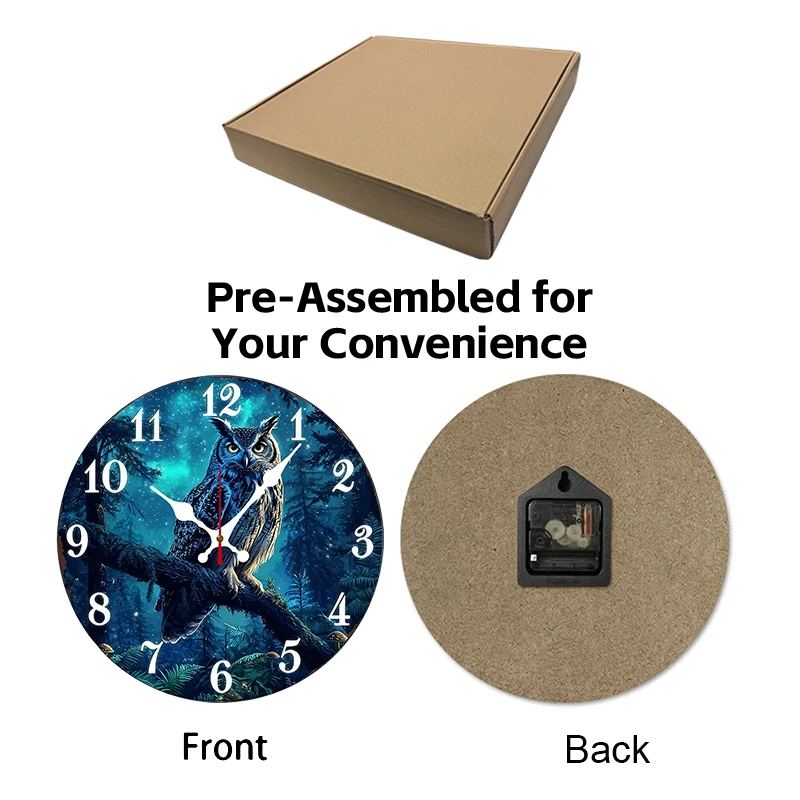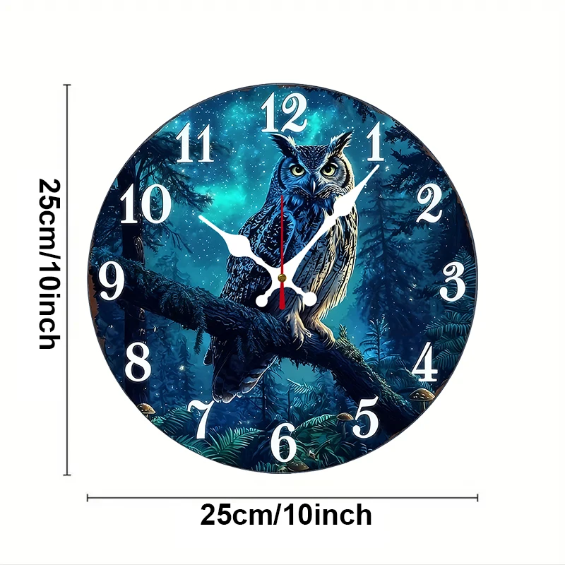 Mystical Forest Owl Wooden Round Silent Hanging Wall Clock, Suitable For Living Room, Office,Study Room,Bedroom, Home Decoration