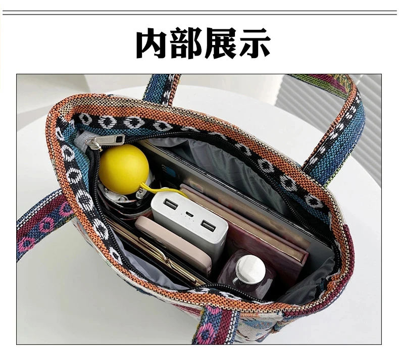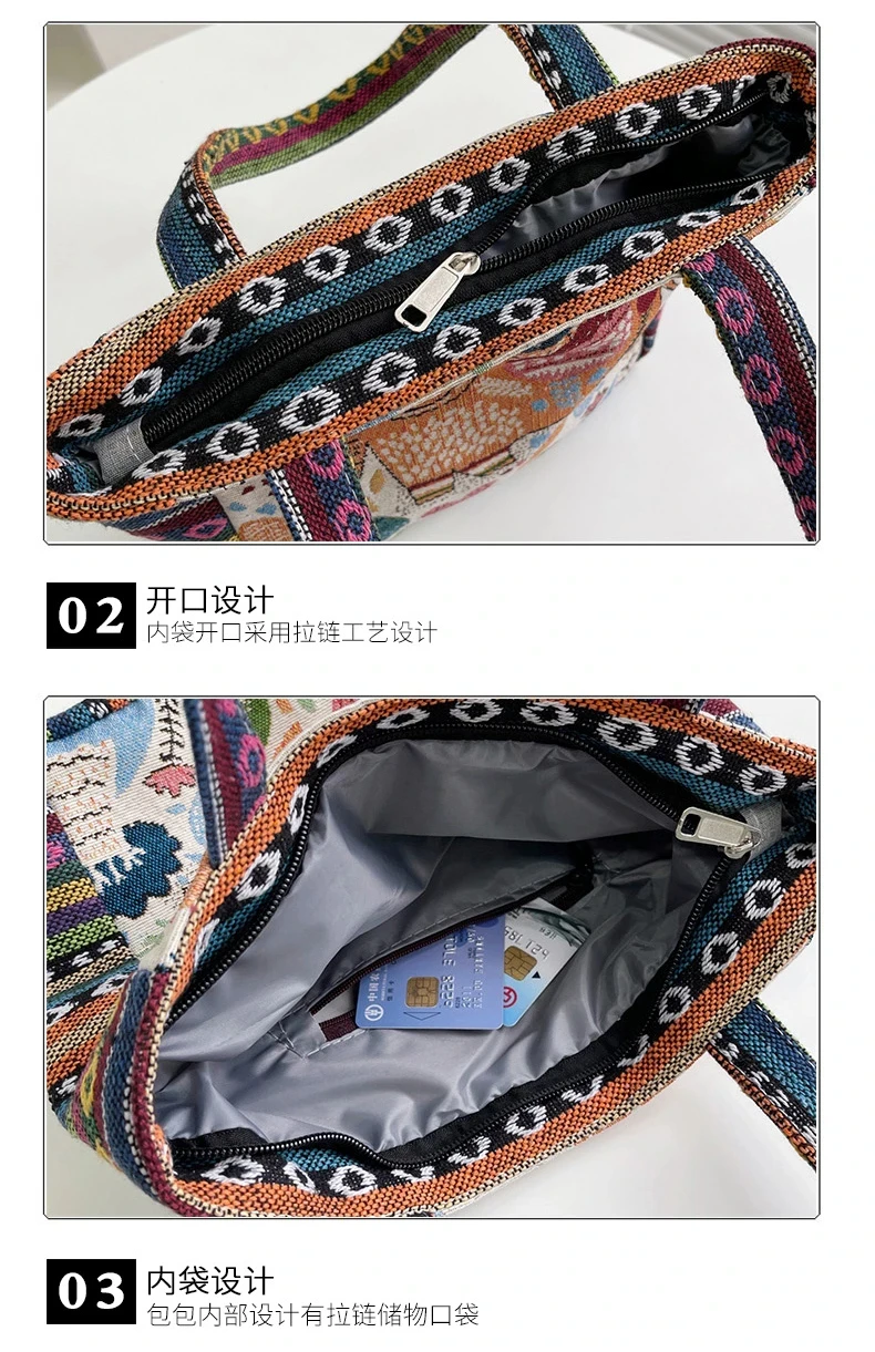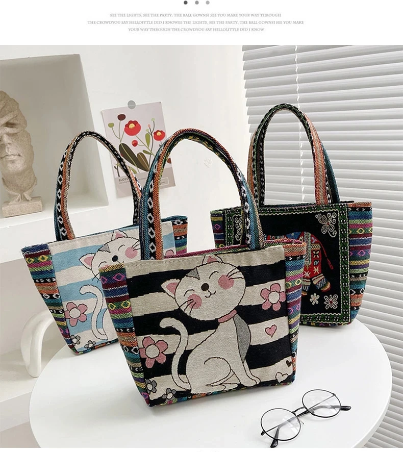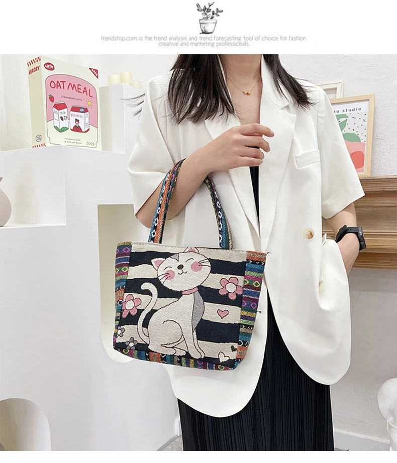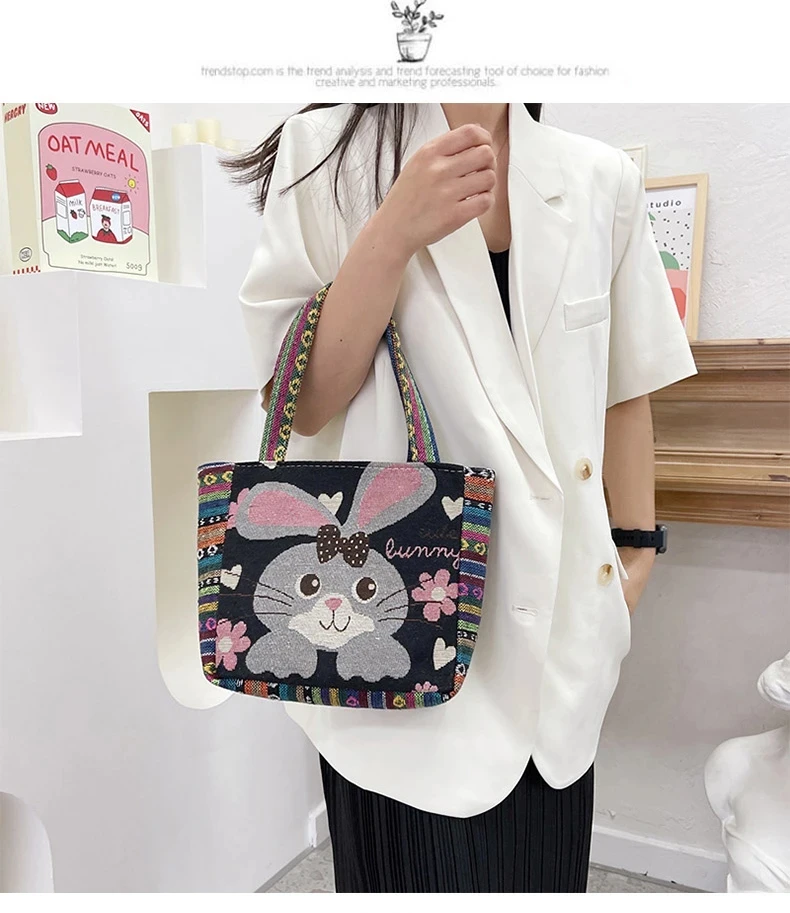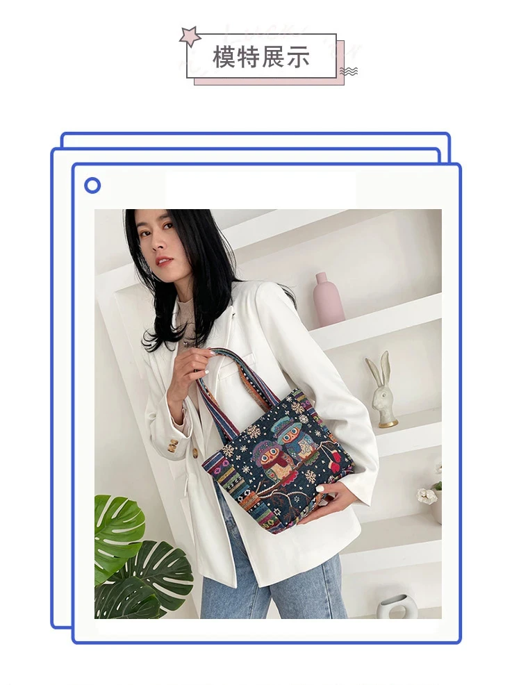 Women Embroidered Tote Bag Retro Owl Elephant Printed Handbags Ladies Large Capacity Reusable Shopping Bag Female Shoulder Bag