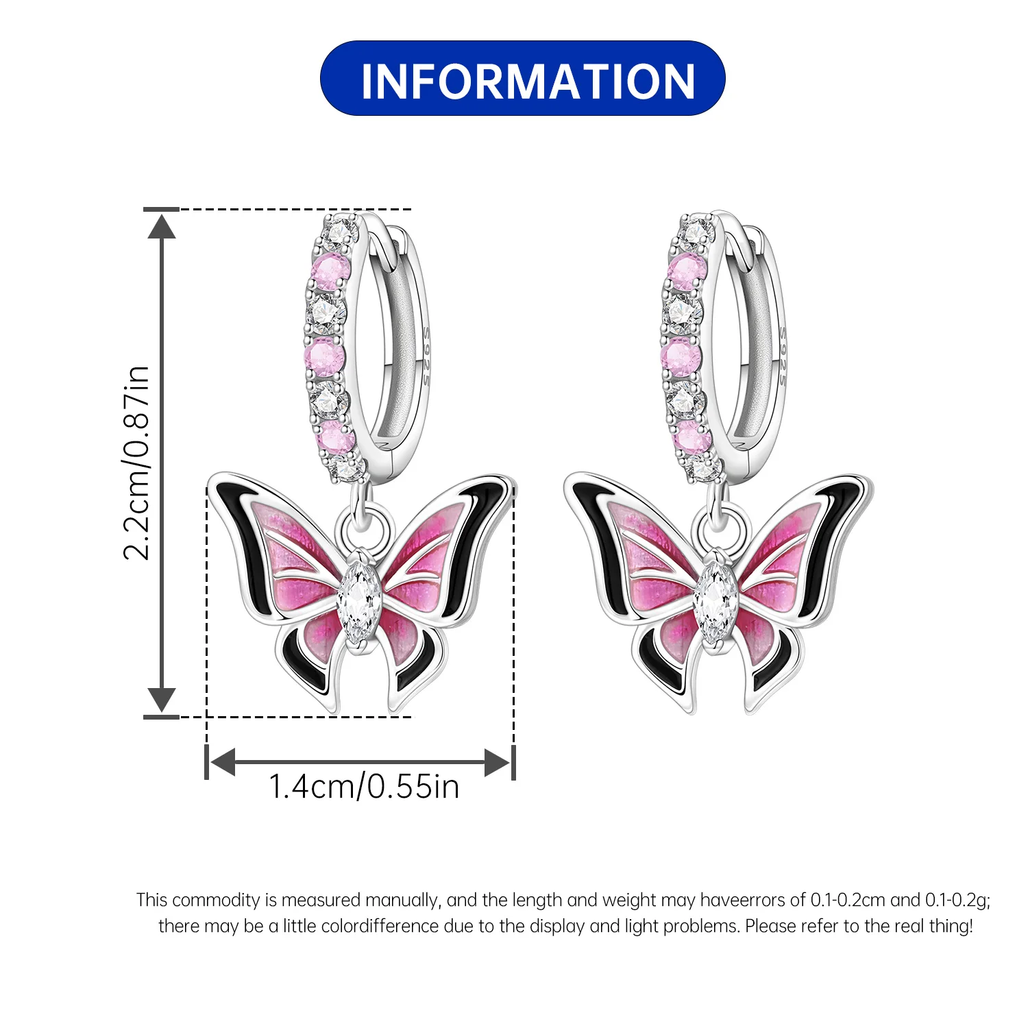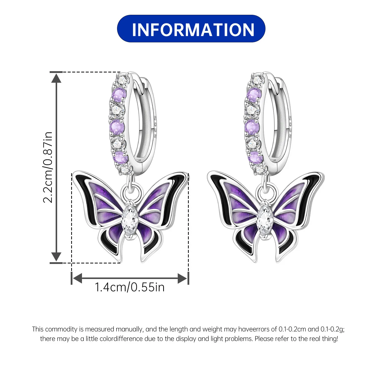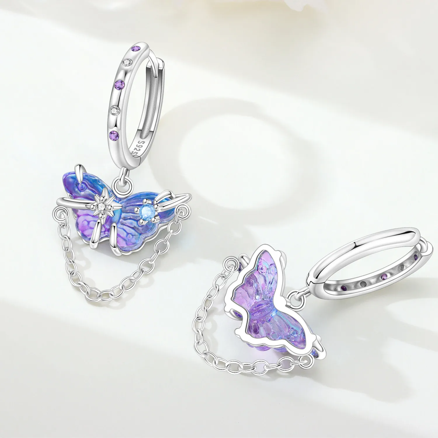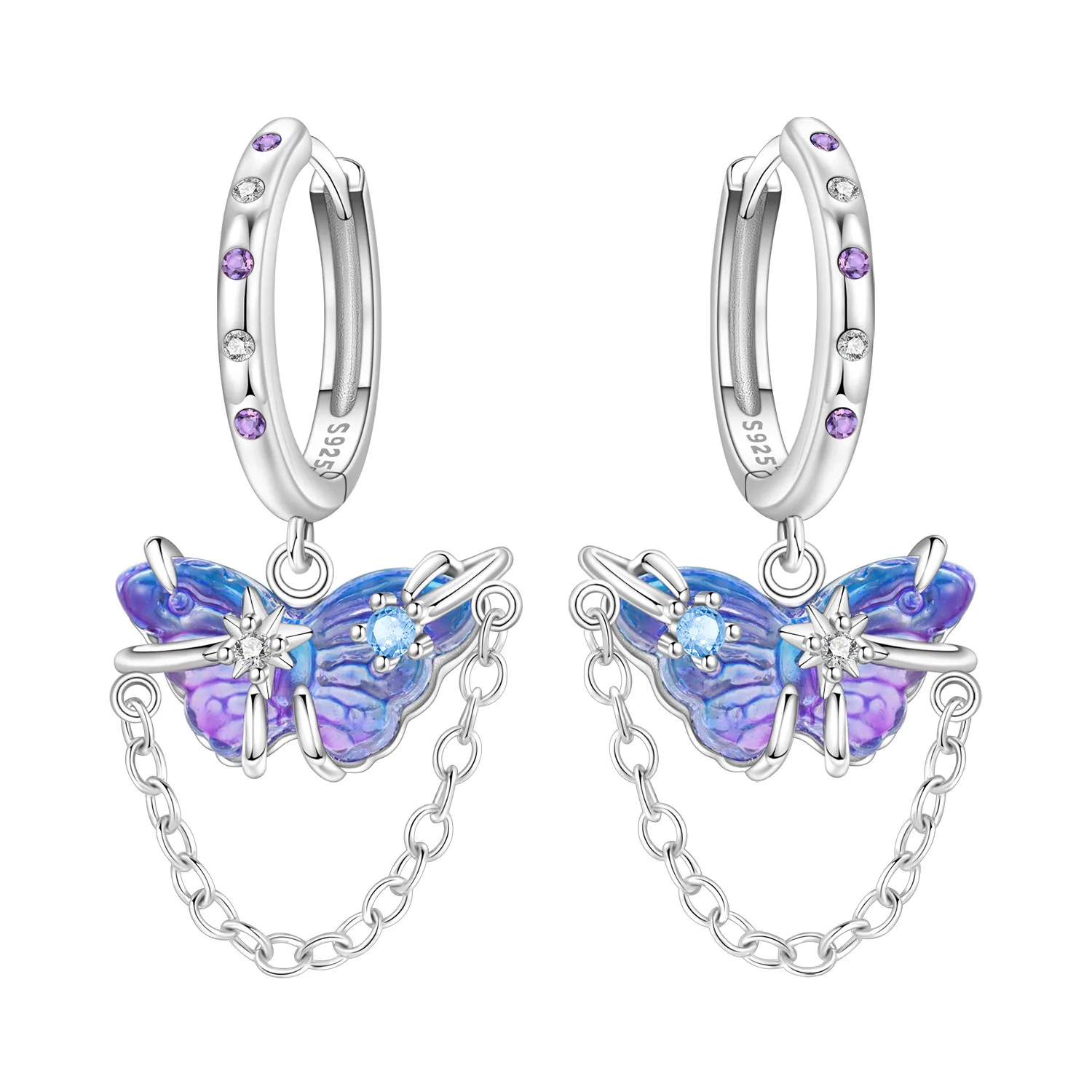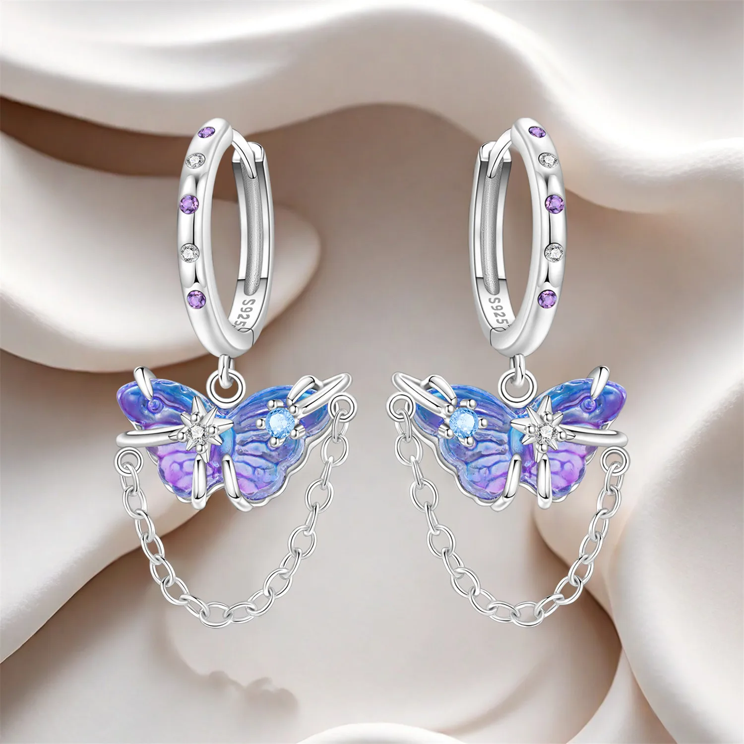 PANPOKI 925 Sterling Silver Purple Butterfly Insect Drop Earrings Women Earrings Charm Fashion Versatile Party Jewelry Gifts