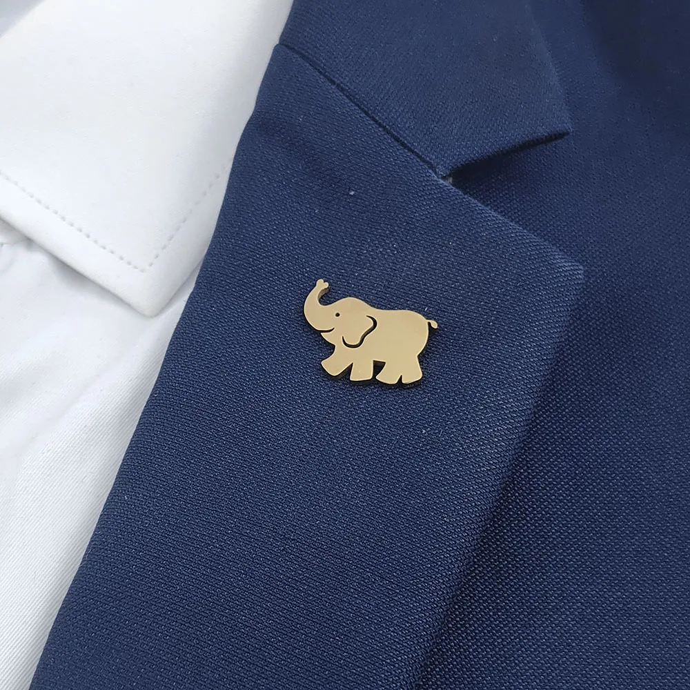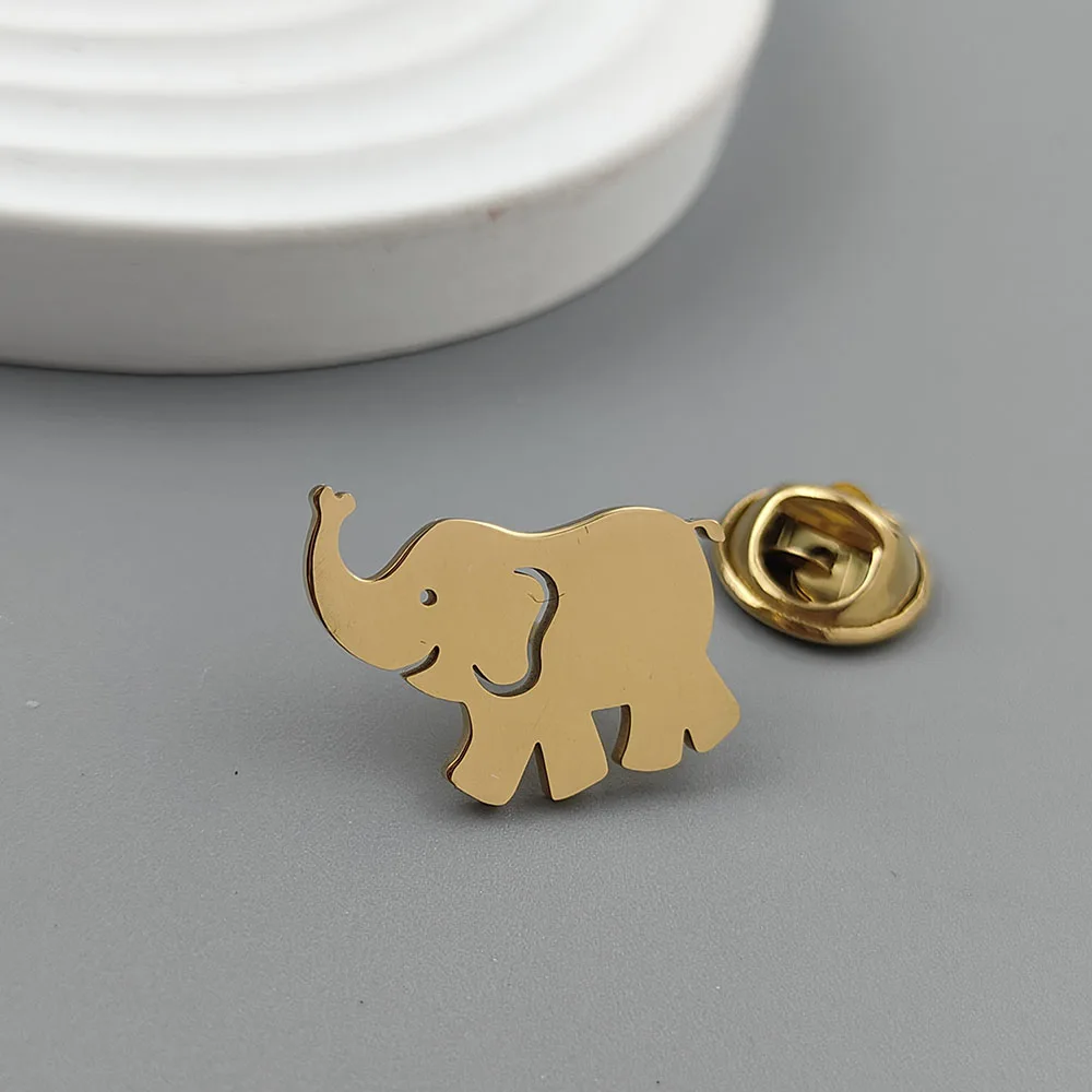 Unique 18K-gold-plated stainless steel brooch: cute elephant design, fashionable lapel pin, suitable for daily gift-giving